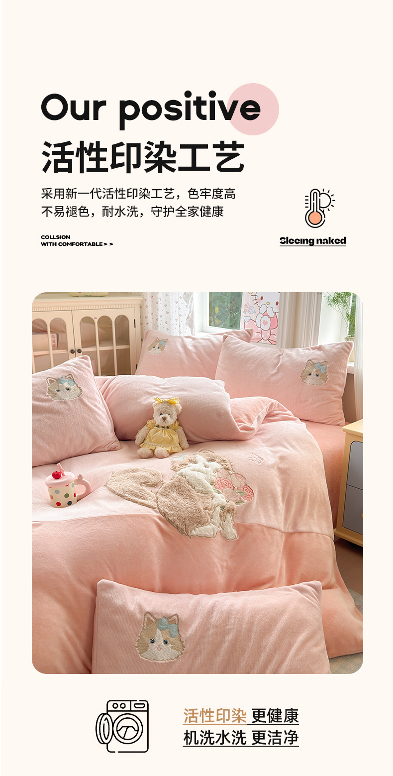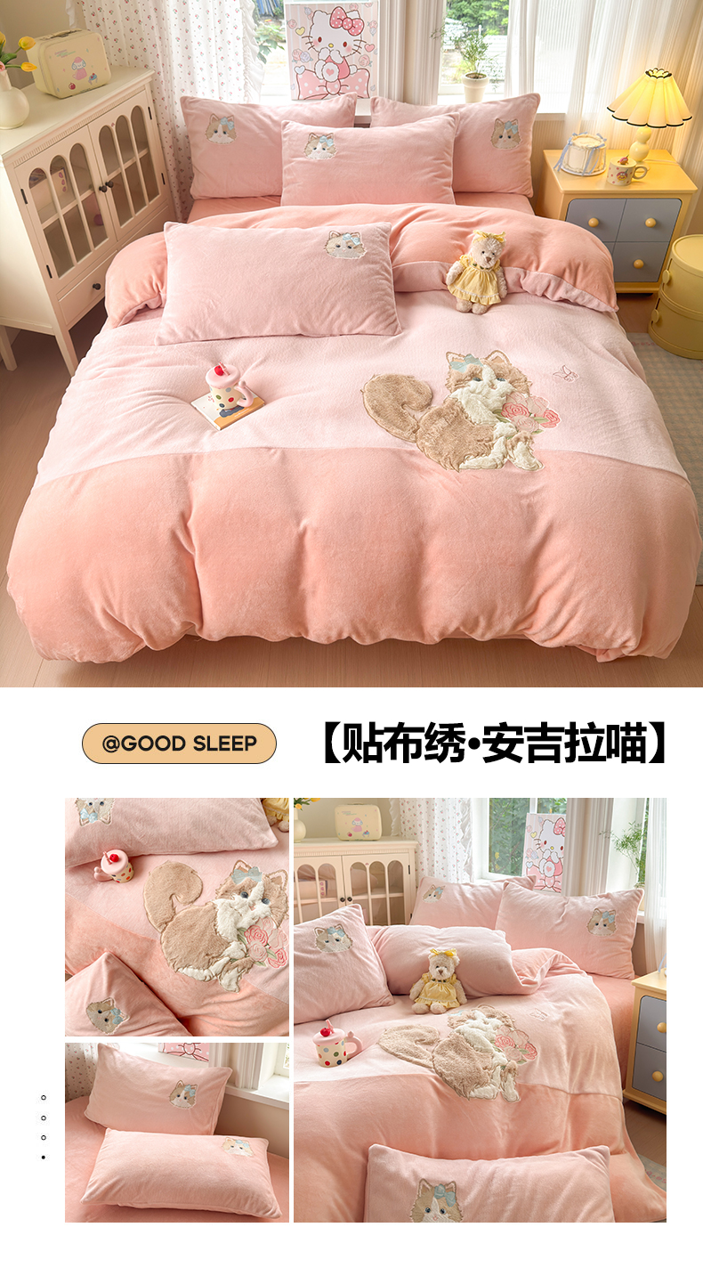 商品名称:卡诗兰 2025新款贴布绣牛奶绒四件套 安吉拉喵
