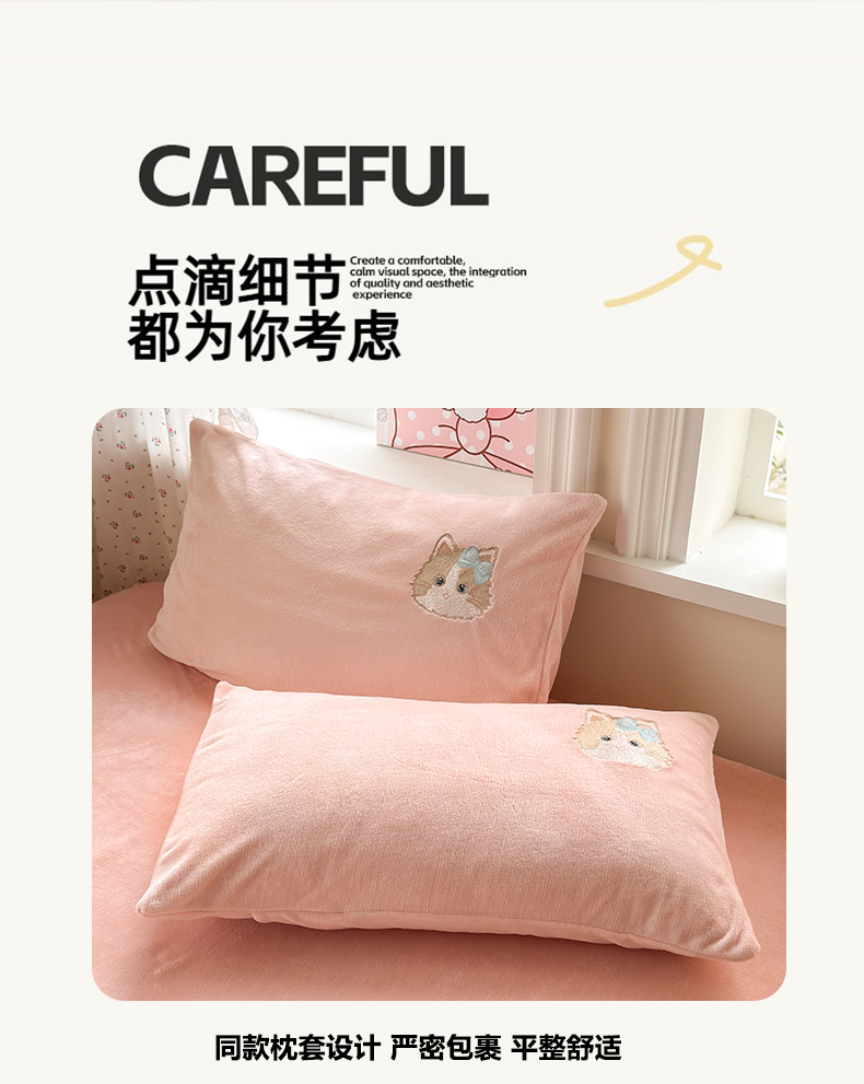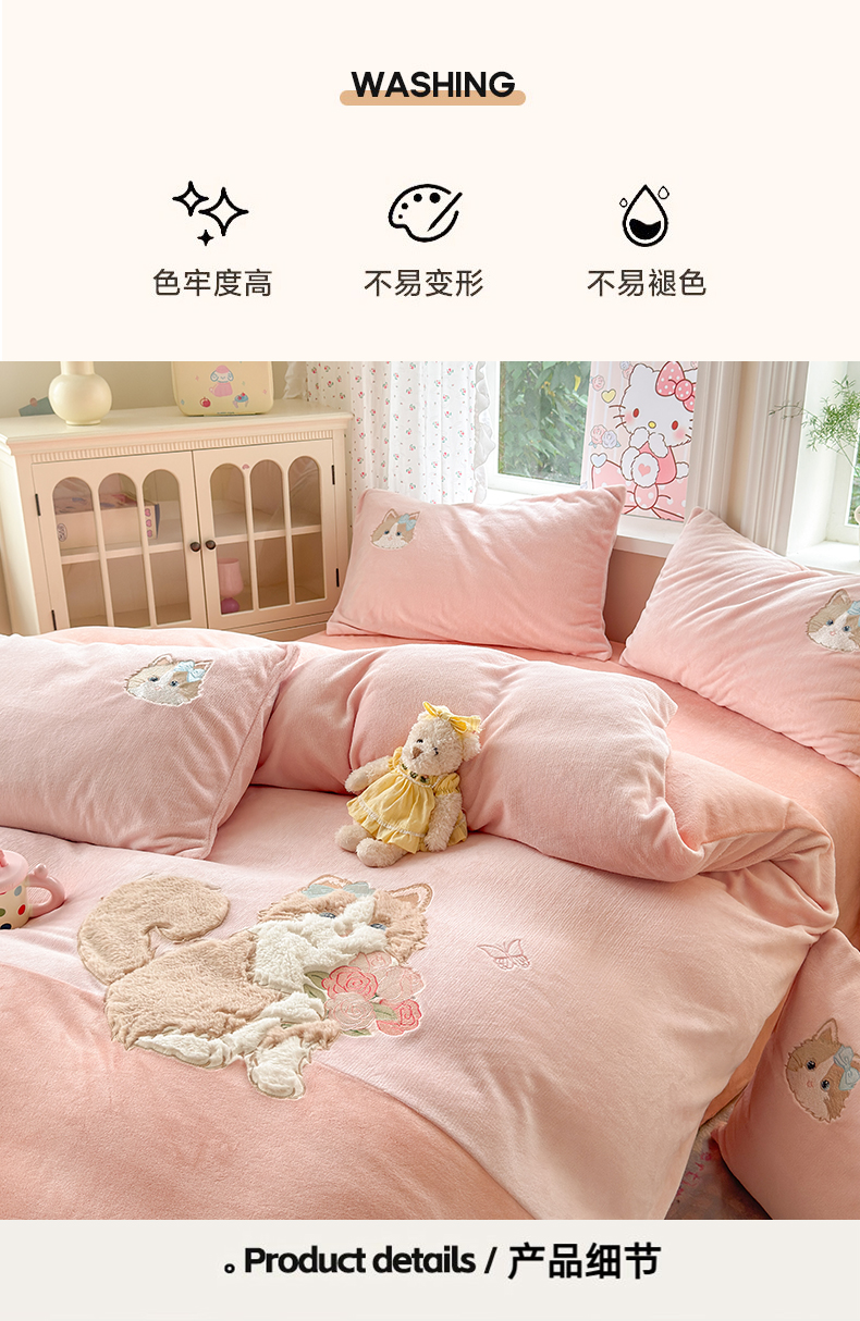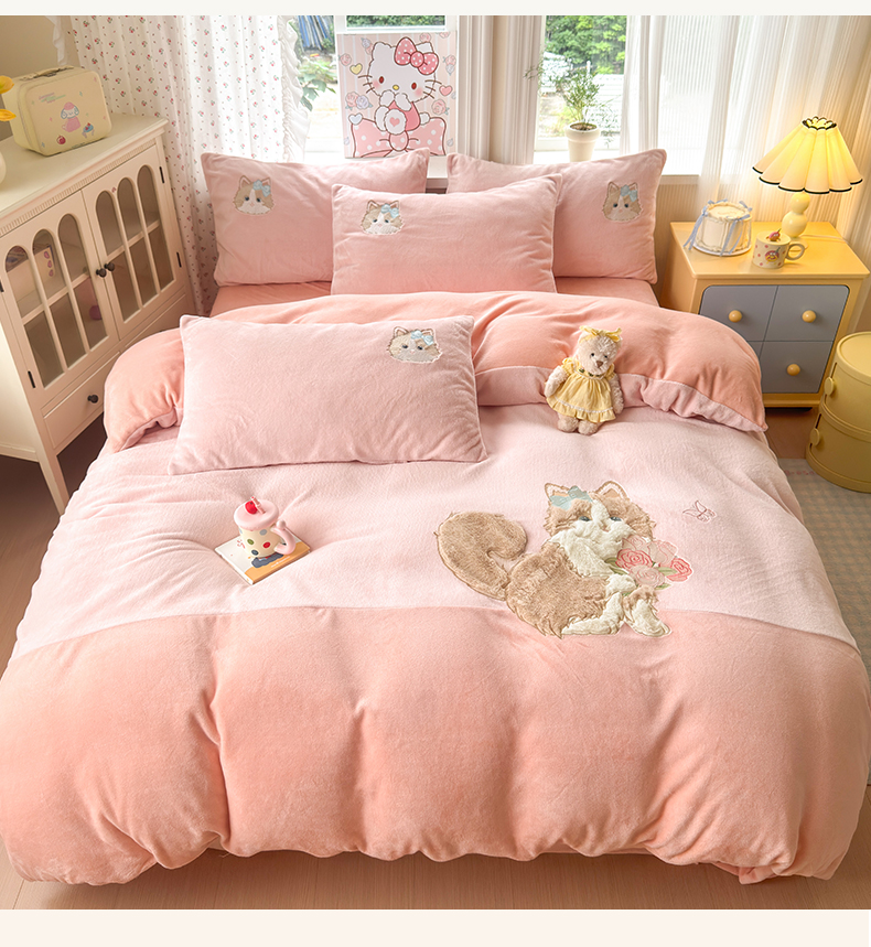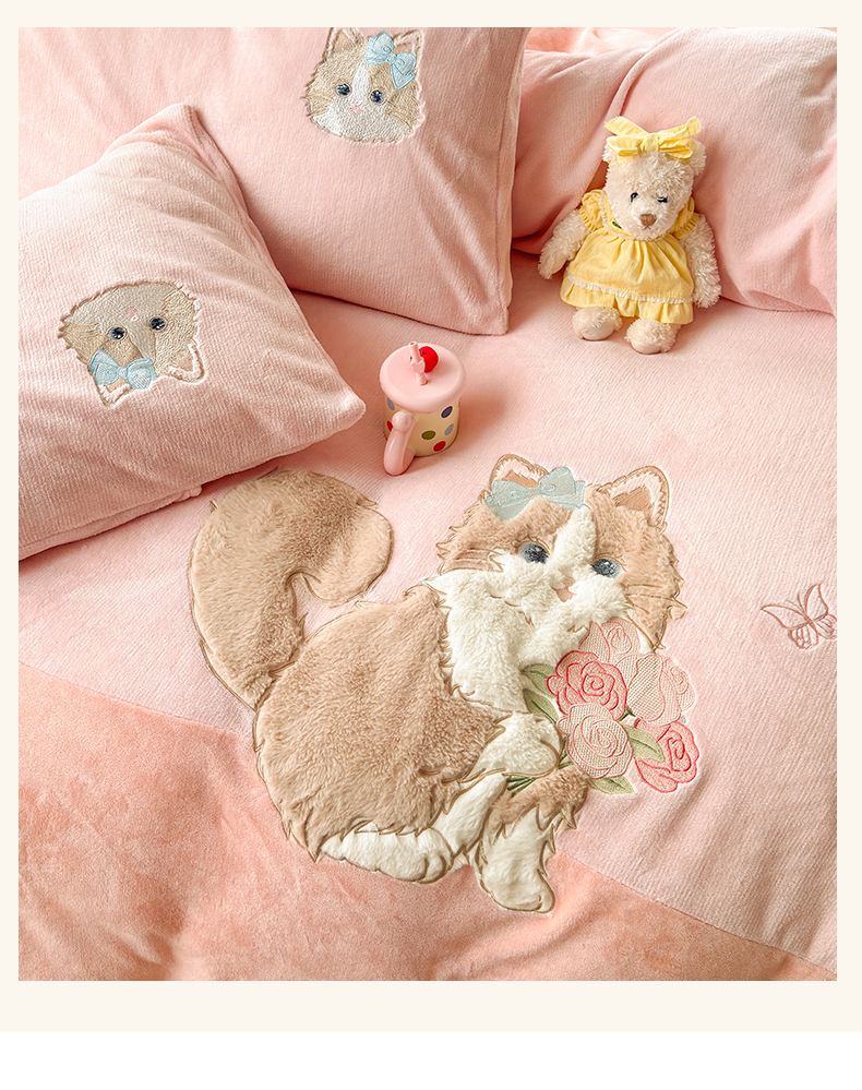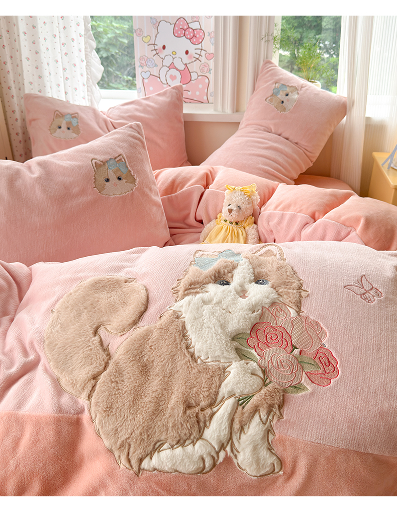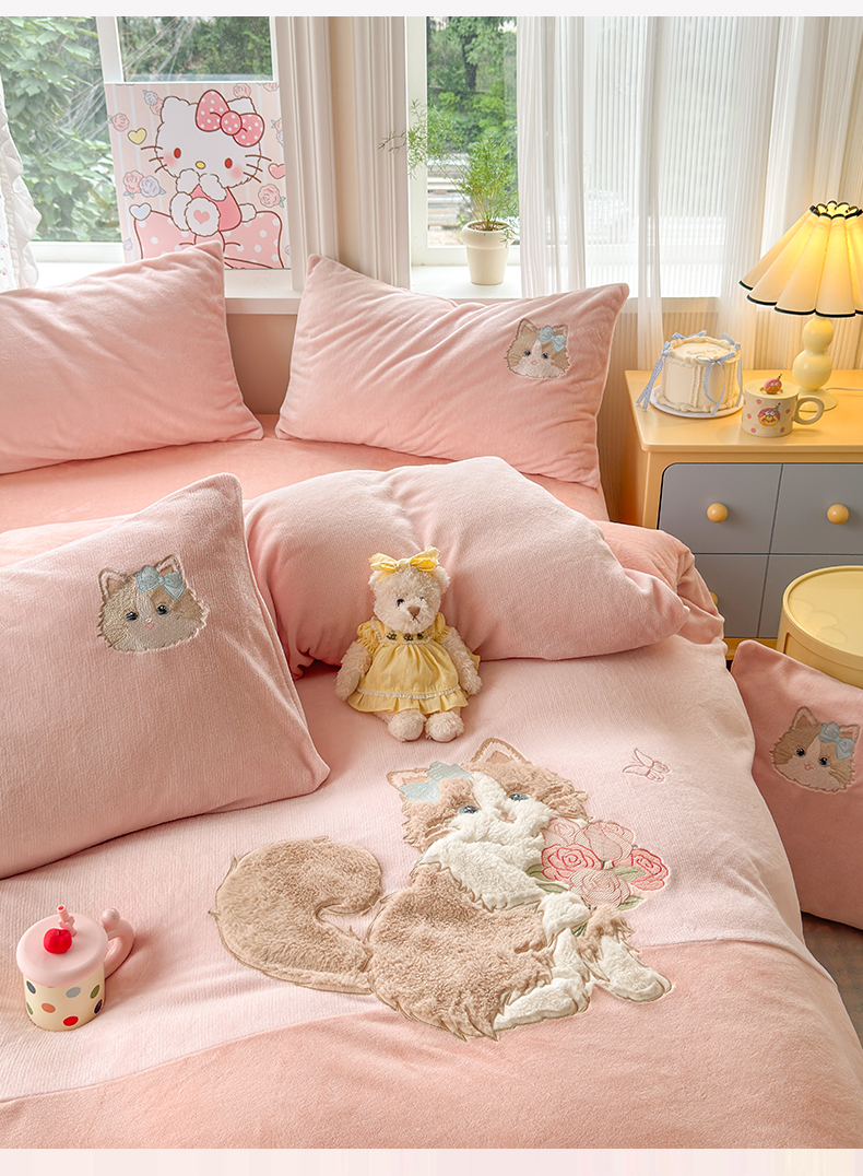 卡诗兰 2025新款贴布绣牛奶绒四件套 安吉拉喵