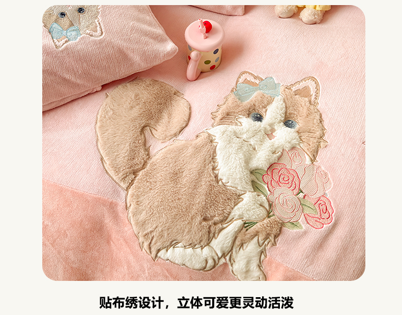 (总)卡诗兰 2025新款贴布绣牛奶绒四件套,皮皮布布,安吉拉喵,查理狗,粉糯kitty
