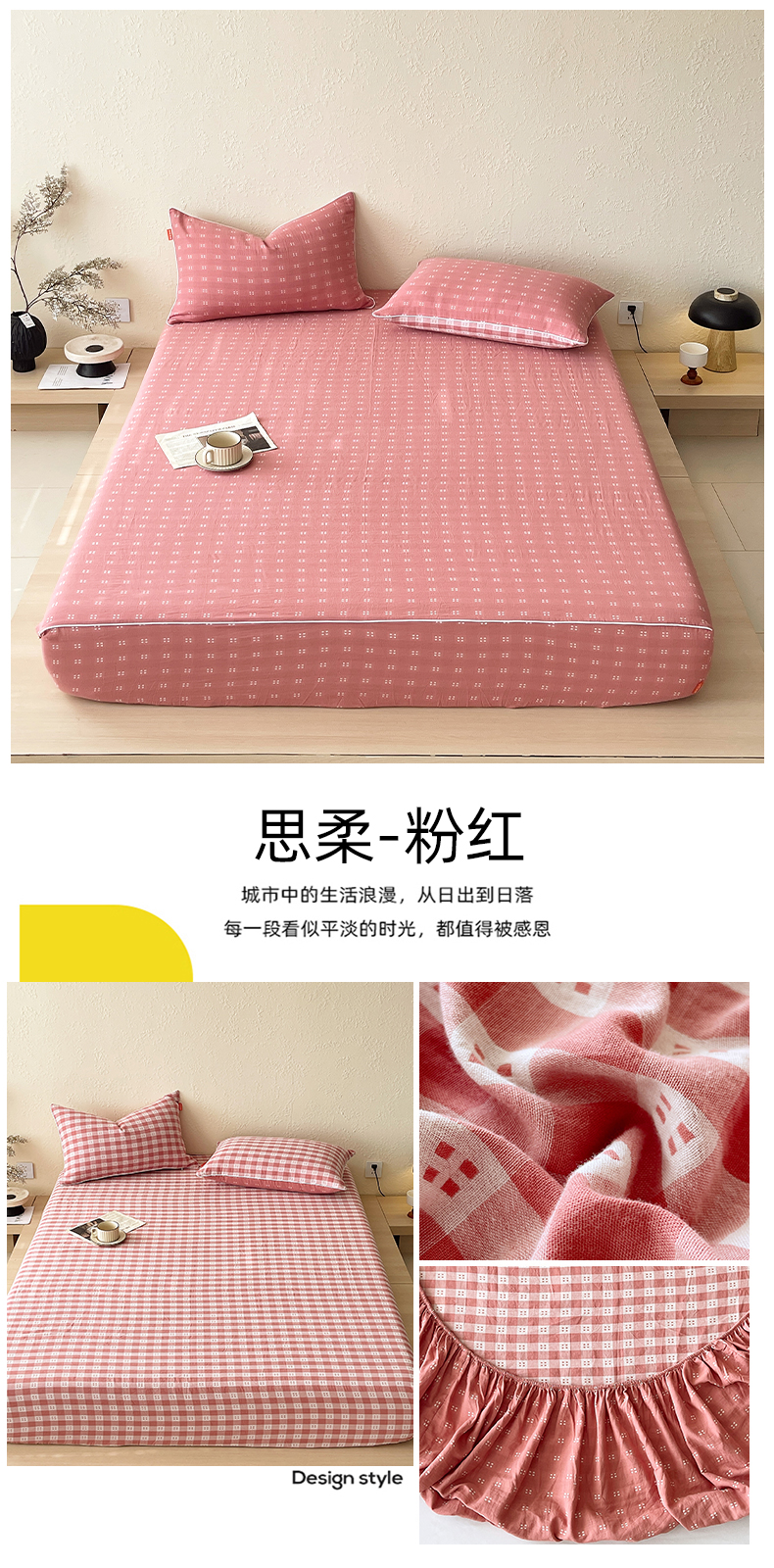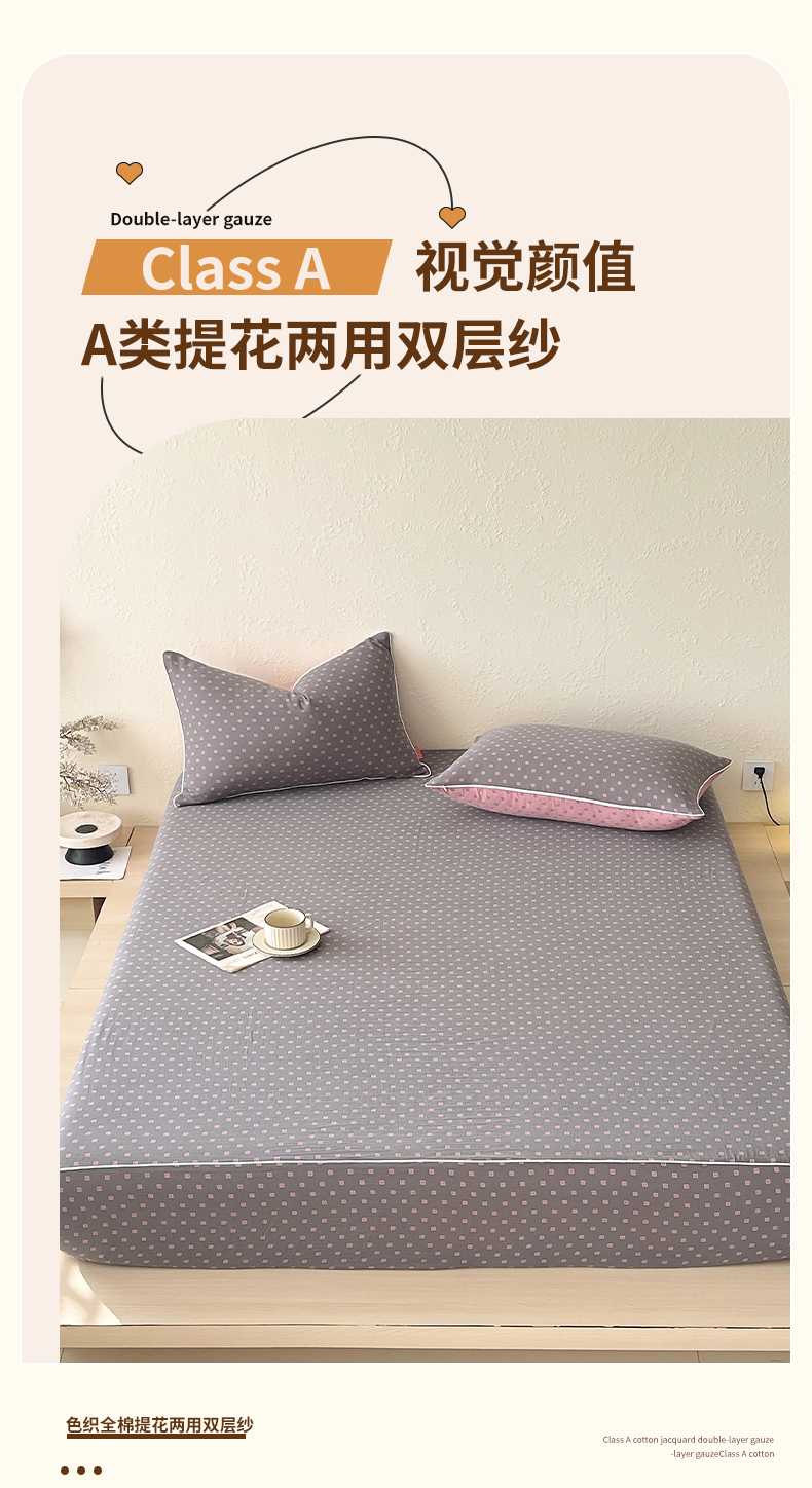 商品名称:春皖家纺 2026春夏新款(正反两用)A类提花双层纱单床笠 回家-粉灰
