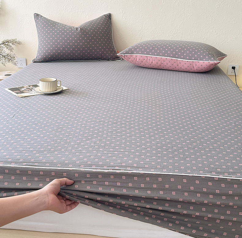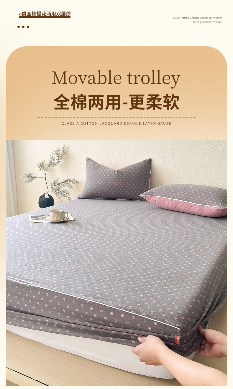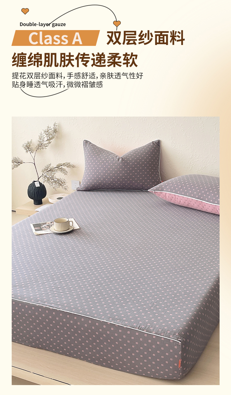 春皖家纺 2026春夏新款(正反两用)A类提花双层纱单床笠 回家-粉灰