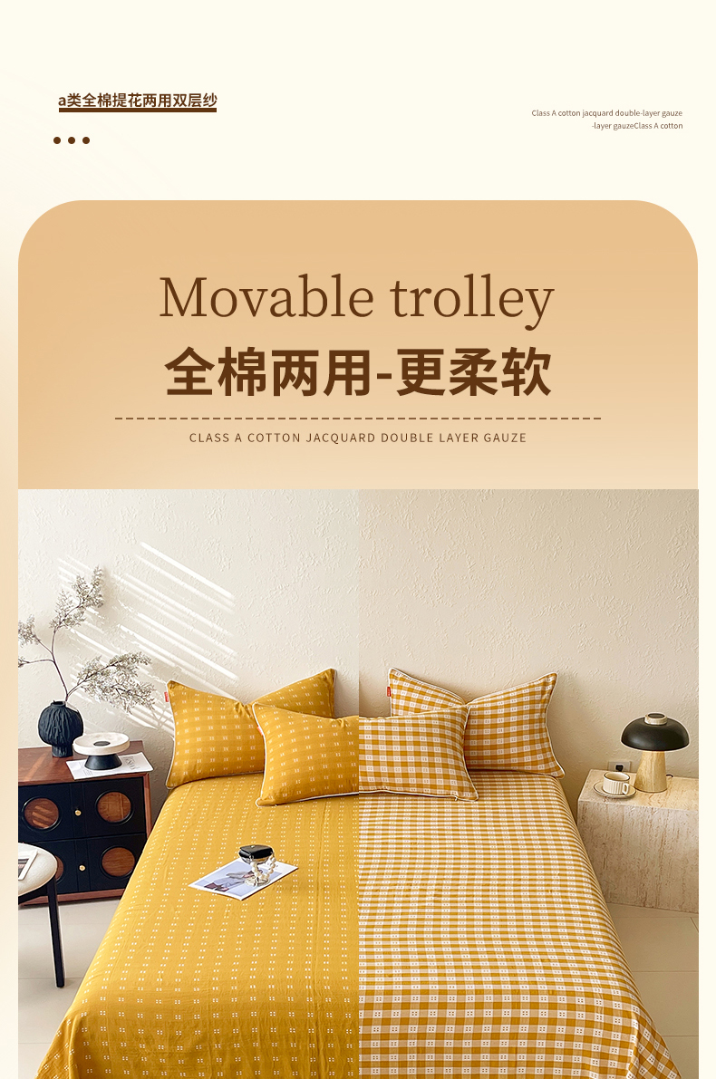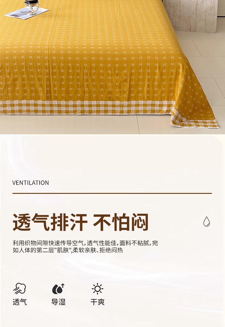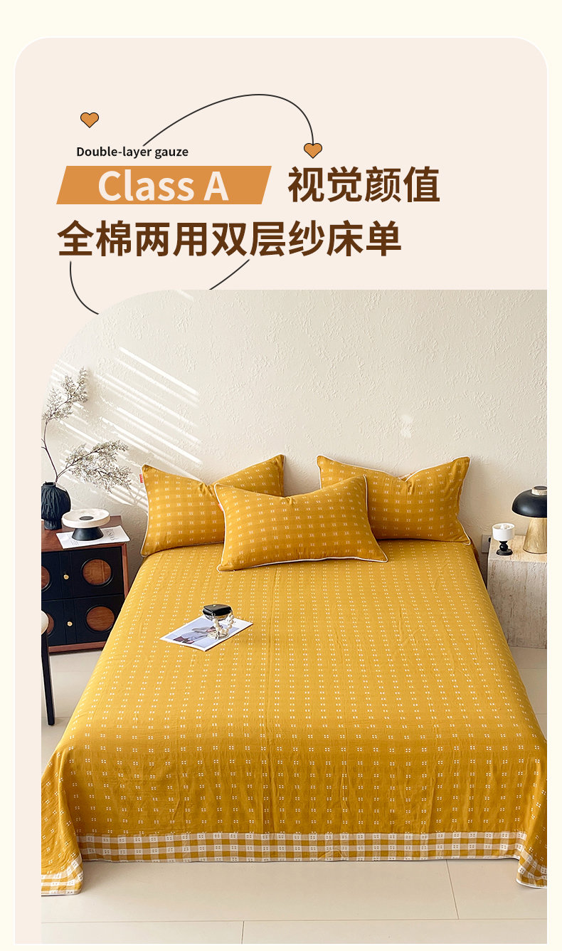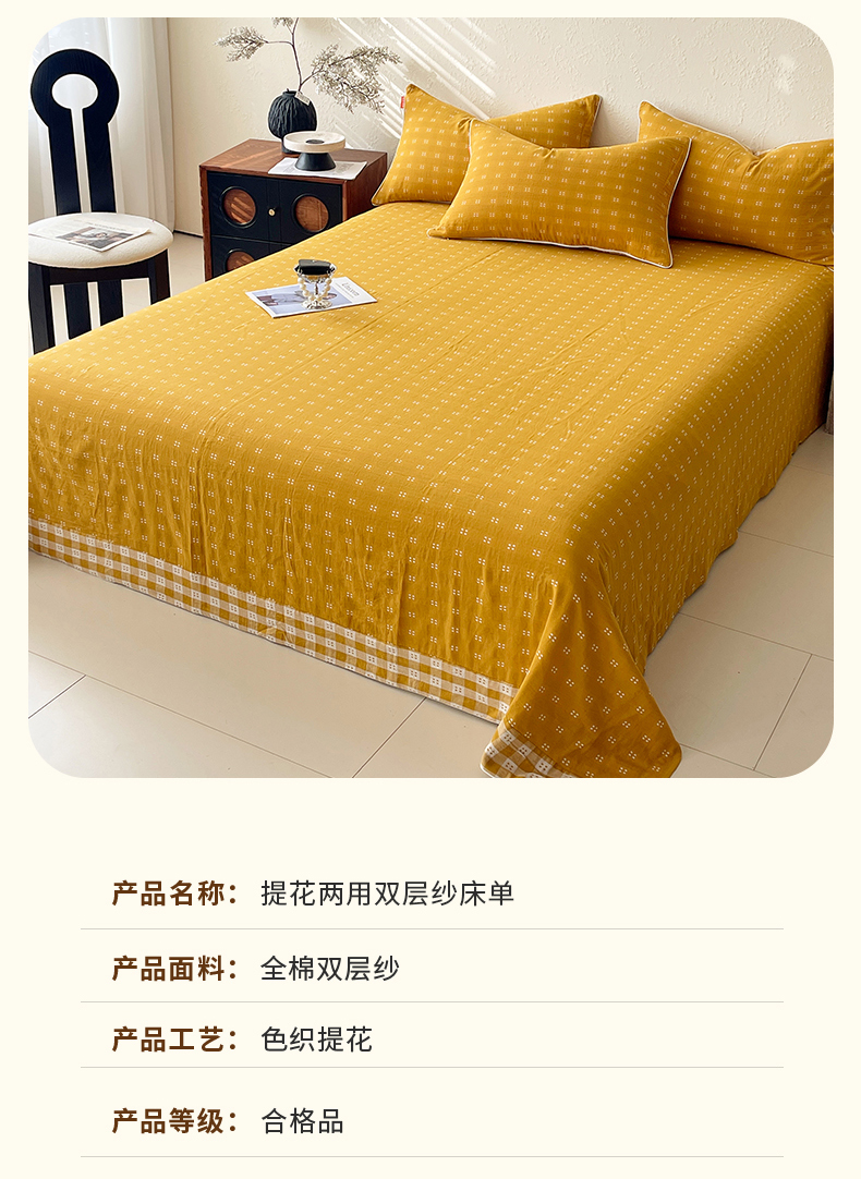 商品名称:春皖家纺 2026春夏新款(正反两用)A类提花双层纱单床单 思柔-黄杏