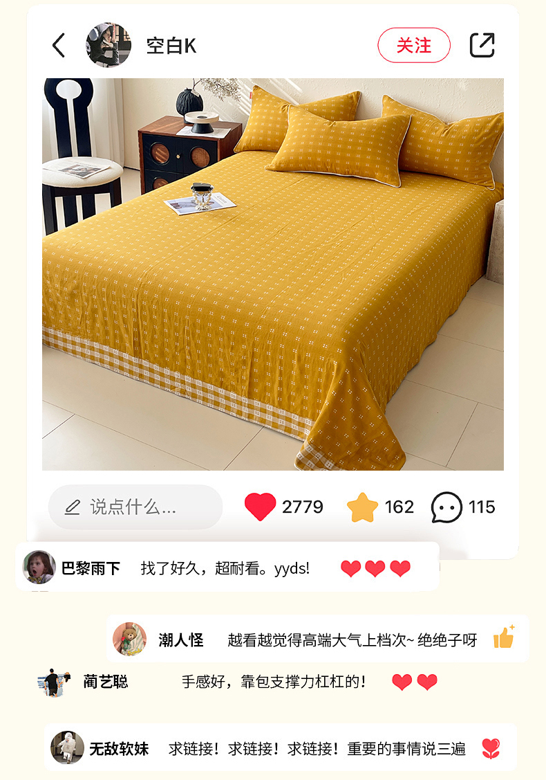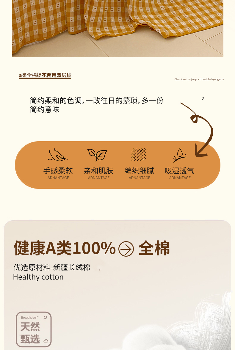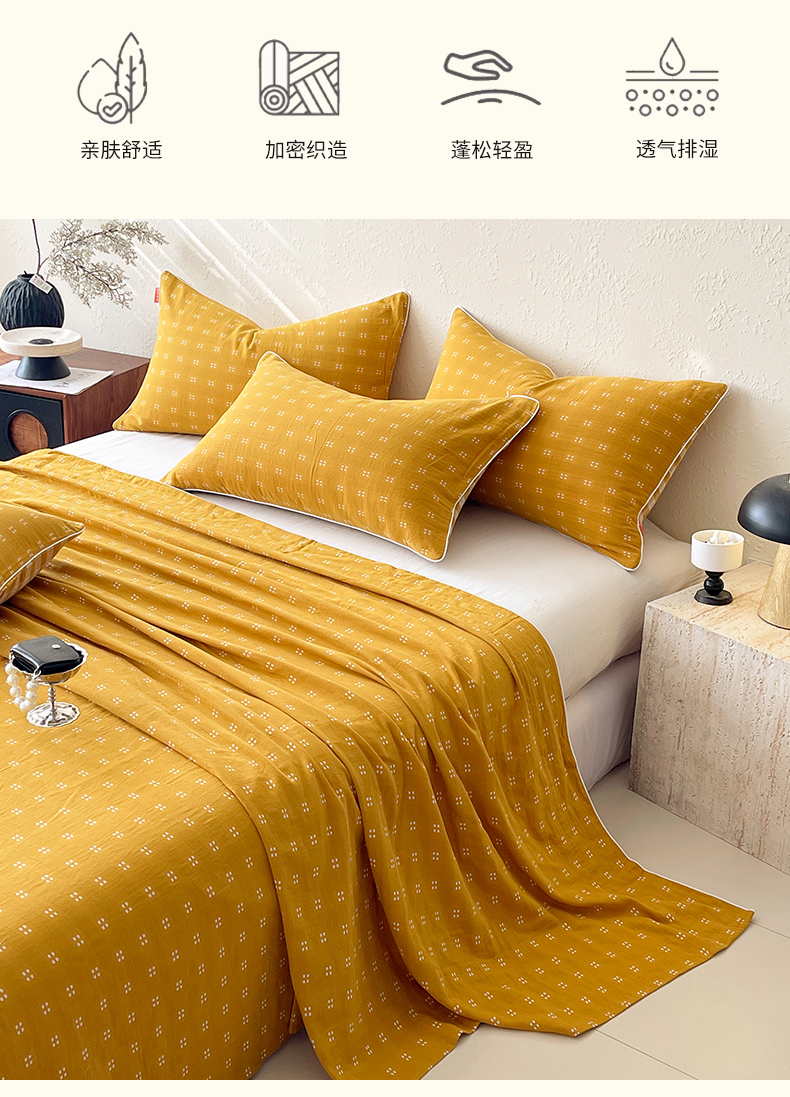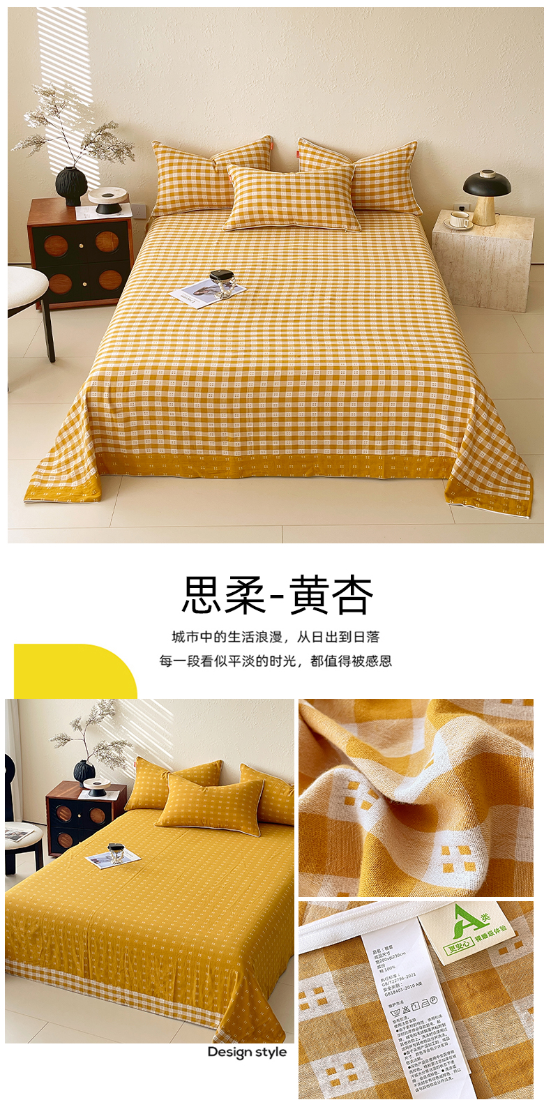 商品名称:春皖家纺 2026春夏新款(正反两用)A类提花双层纱单床单 思柔-黄杏