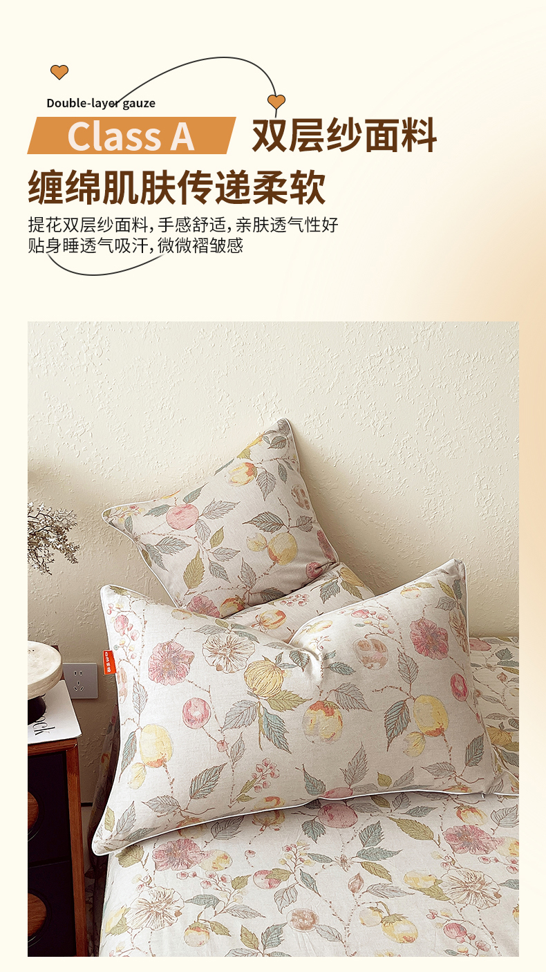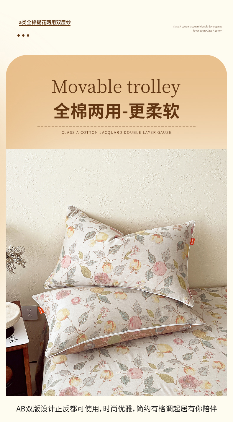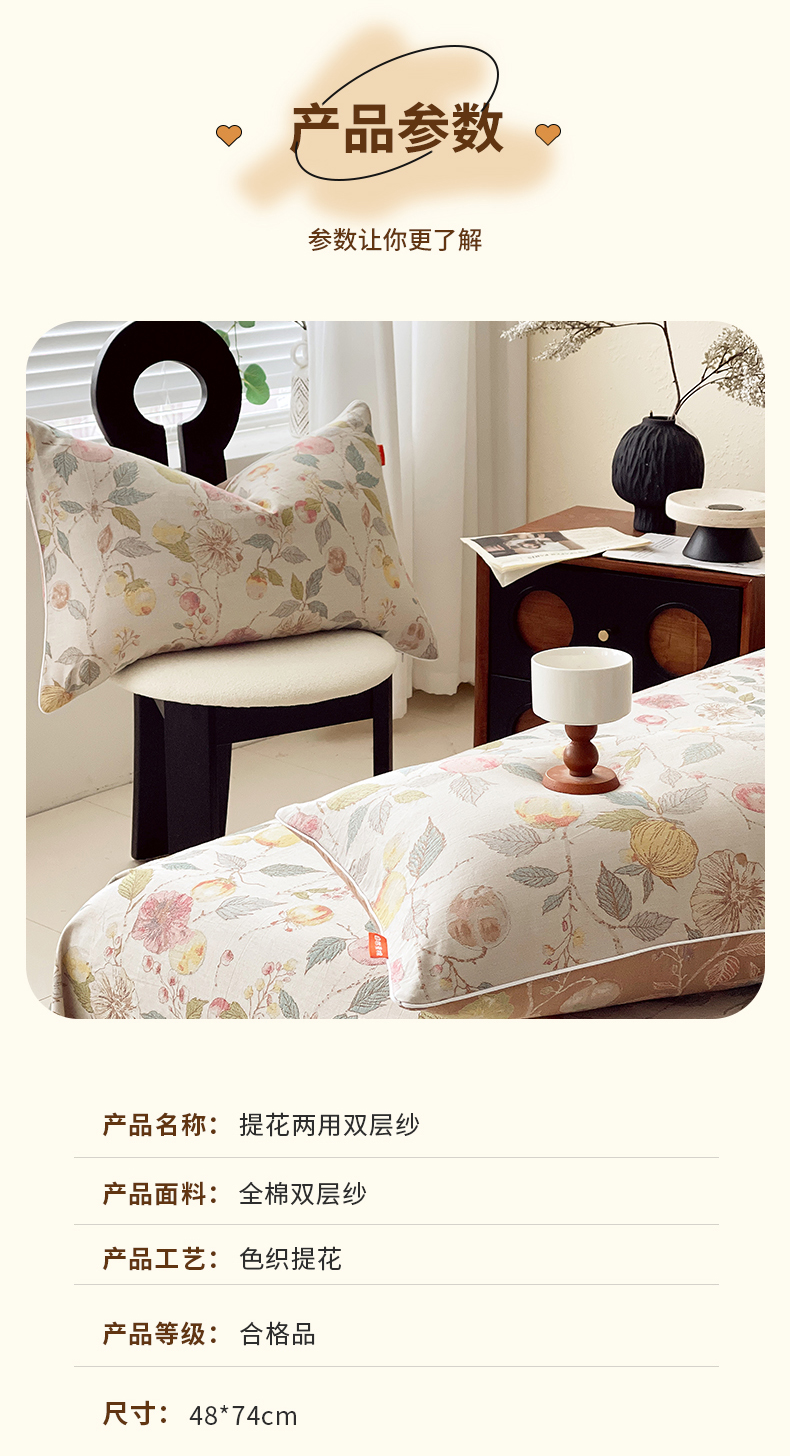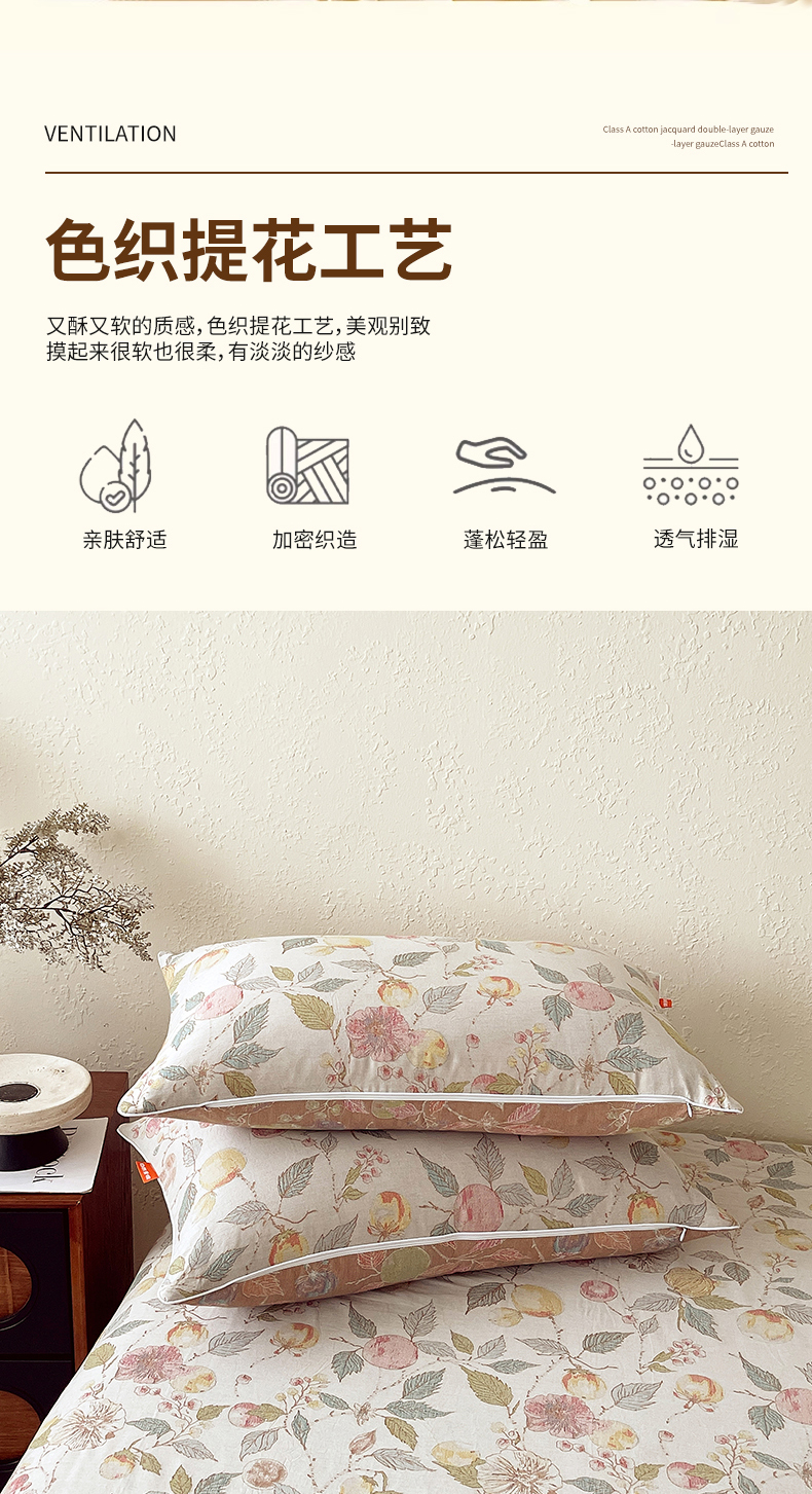 商品名称:春皖家纺 2026春夏新款(正反两用)A类提花双层纱单枕套 稔秋