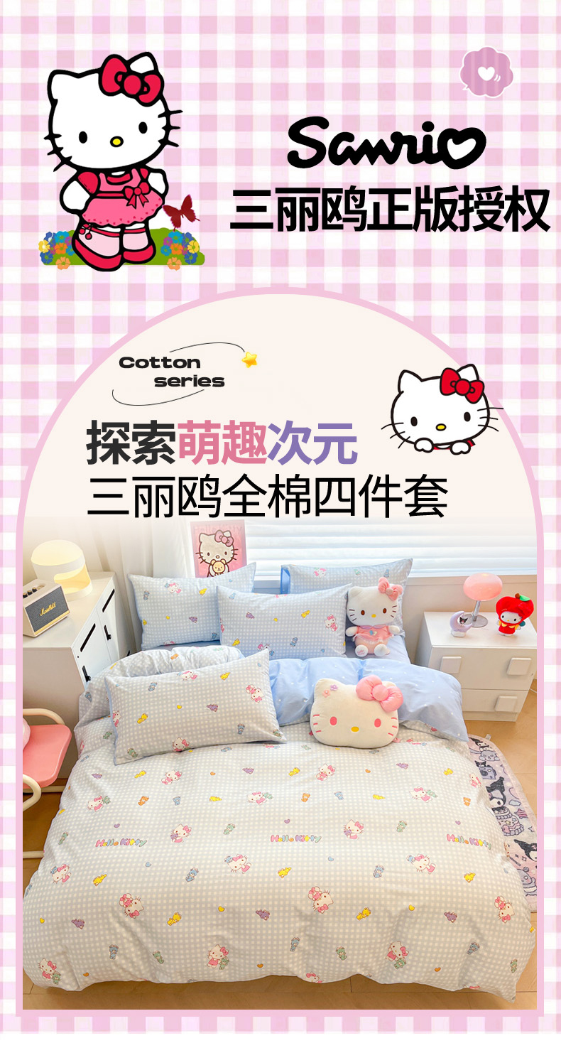 当前位置: 91家纺网 > 商品网购 > 床品套件 > 四件套 > 全棉普通四件套 > 暮思家居 2026新款正版授权三丽鸥全棉纯棉四件套系列-第二批 小熊KT