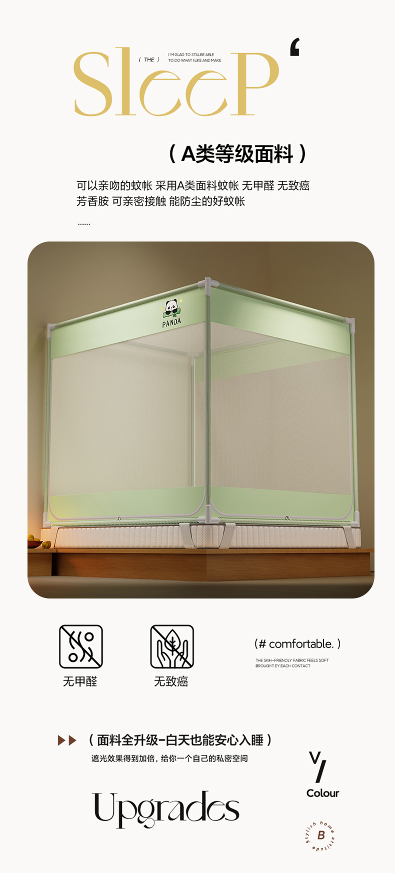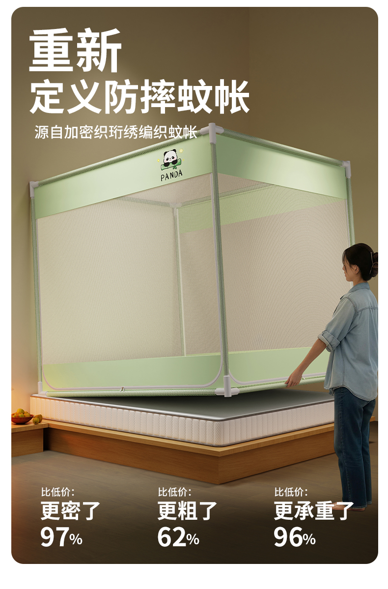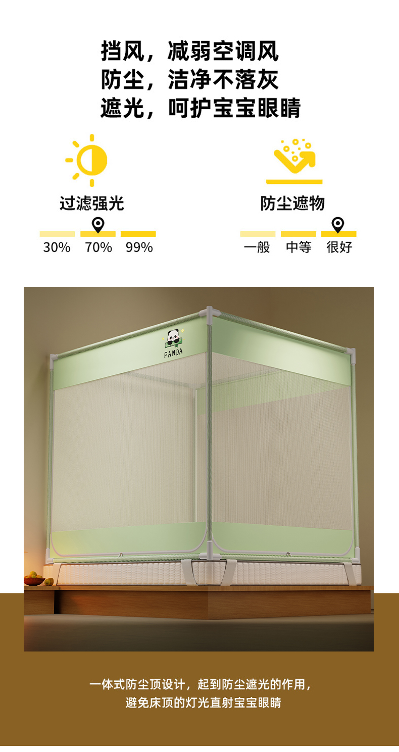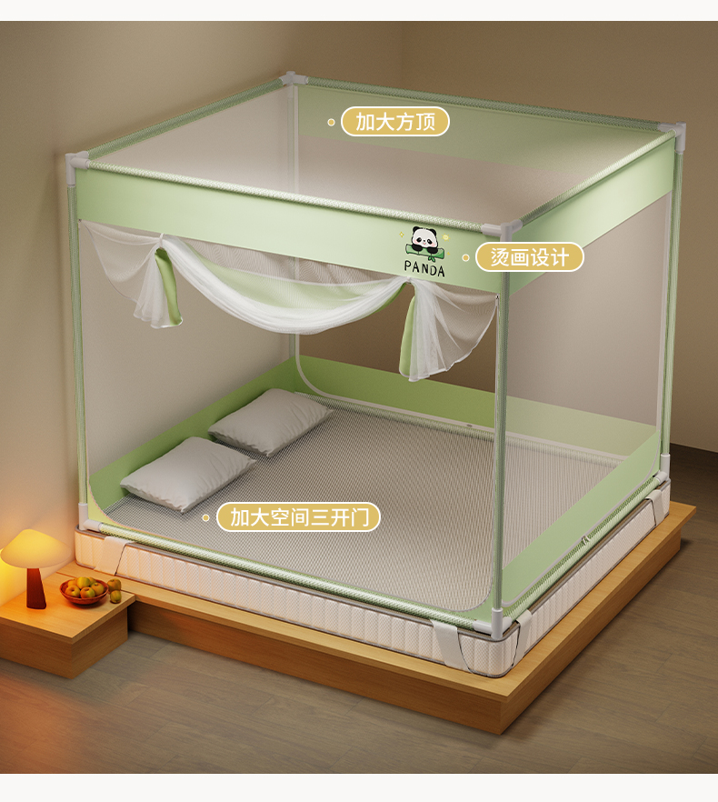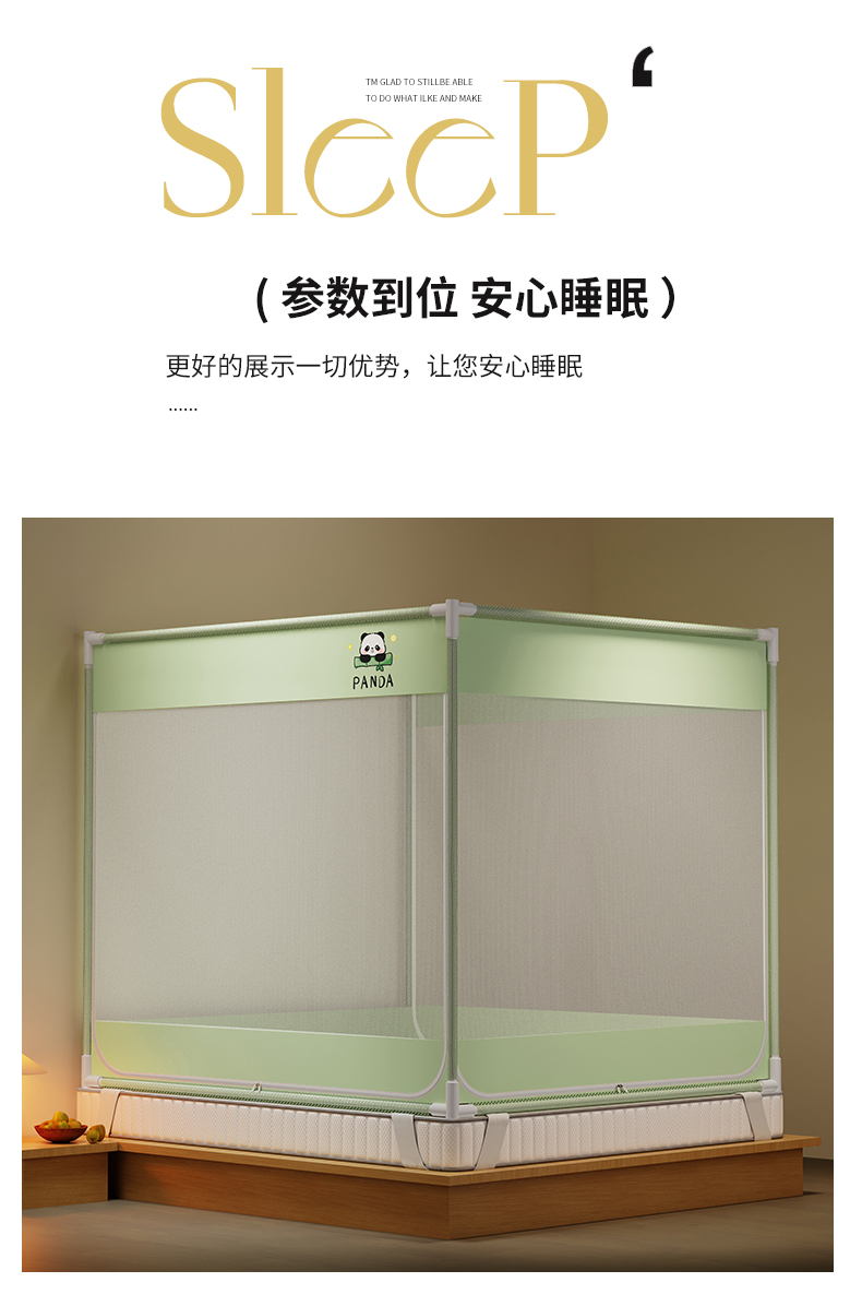 当前位置: 91家纺网 > 商品网购 > 床上用品 > 蚊帐 > 坐床式蚊帐 > 初心家纺 2026新款外穿杆坐床防摔蚊帐-场景一 绿-熊猫