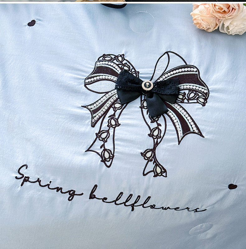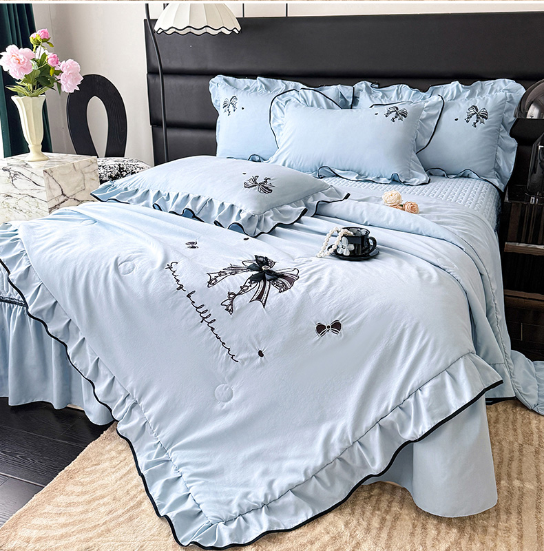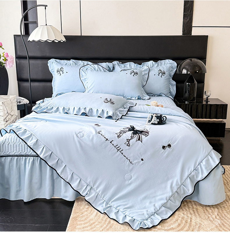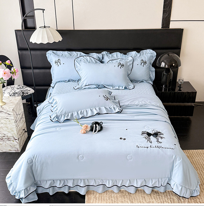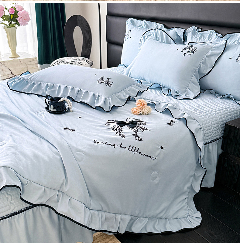 绒棉世家 2026春夏新款多功能夏被床盖四件套刺绣 赫本-兰