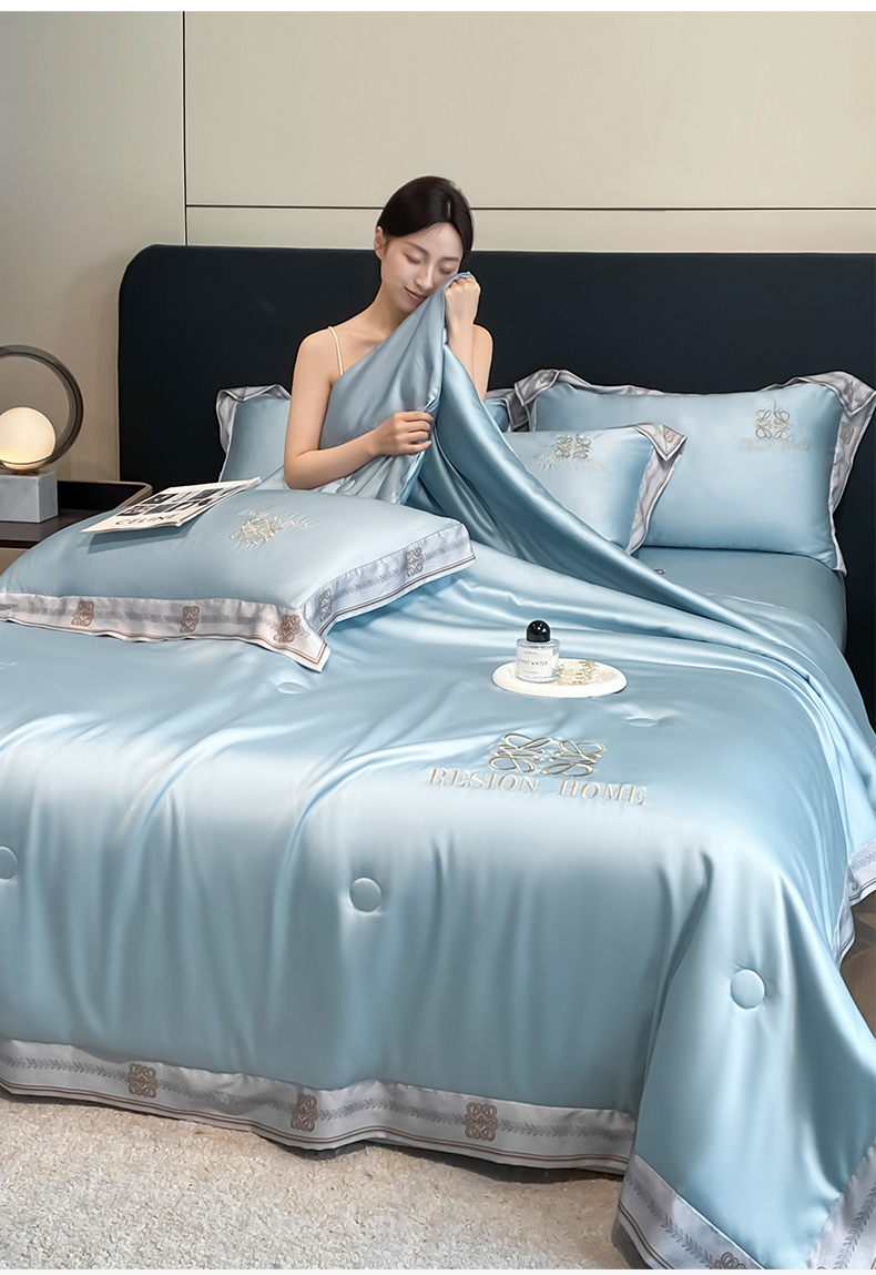 (总)露梦 2026新款大牌轻奢款水洗真丝刺绣数码宽边夏被四件套-安迪,安迪-爱玛橙,安迪-高级灰,安迪-海盐绿,安迪-摩卡蓝,安迪-嫩奶绿,安迪-胭脂粉