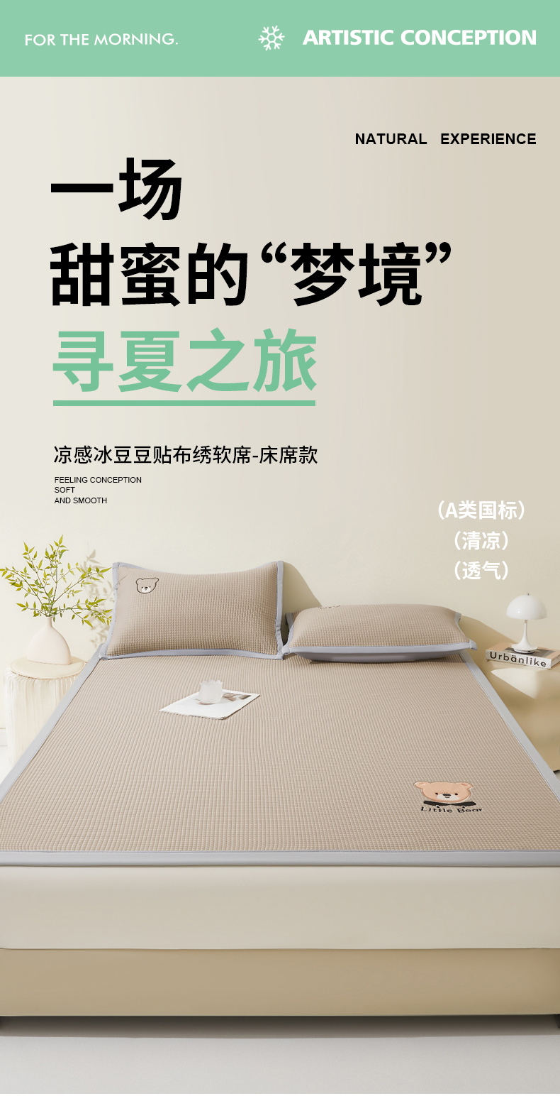 (总)爱思凯家纺 2026新款【瑞宝熊】PE凉感床席款冰豆豆软席凉席席子-场景一