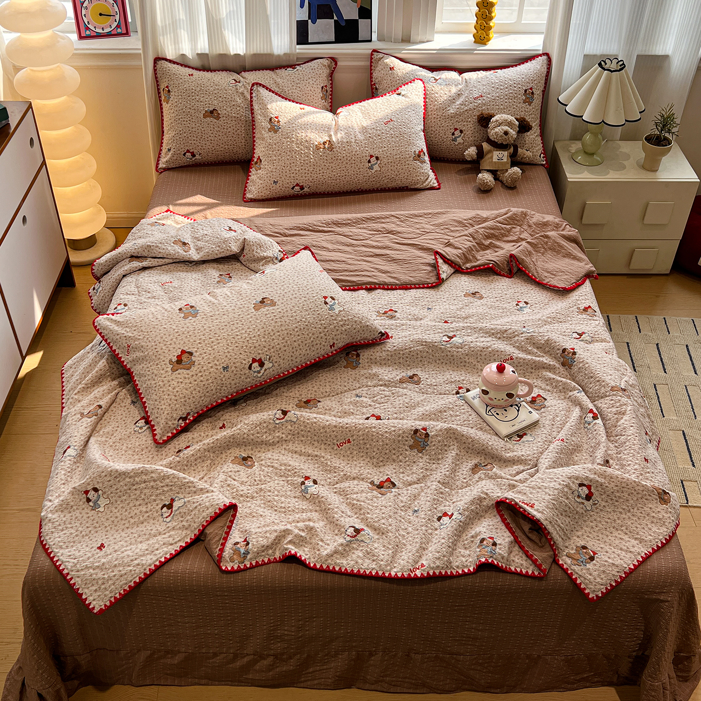 (总)仟网汇 2026新款贝壳边泡芙纱三角针夏被四件套,滑板狗,丽莎,奶油小狗,柿柿如意,甜心小兔,夏被叠拍