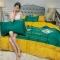 润缦 2020新款水洗真丝四件套双拼系列 墨绿+姜黄