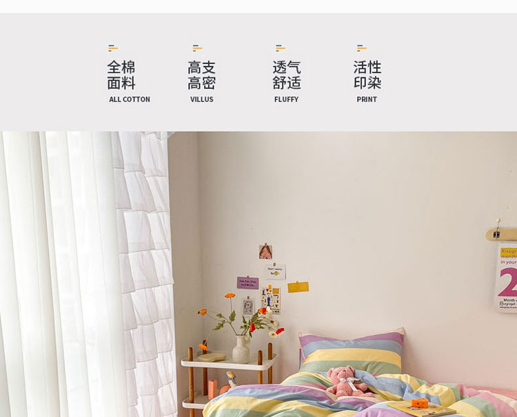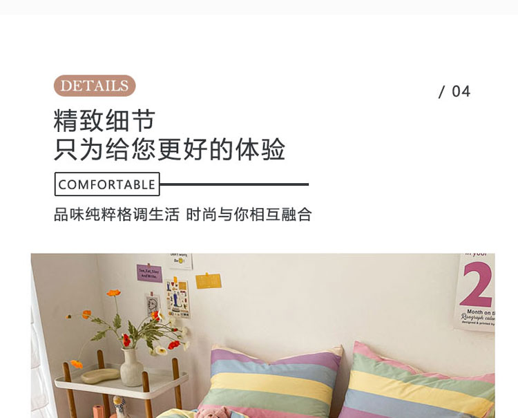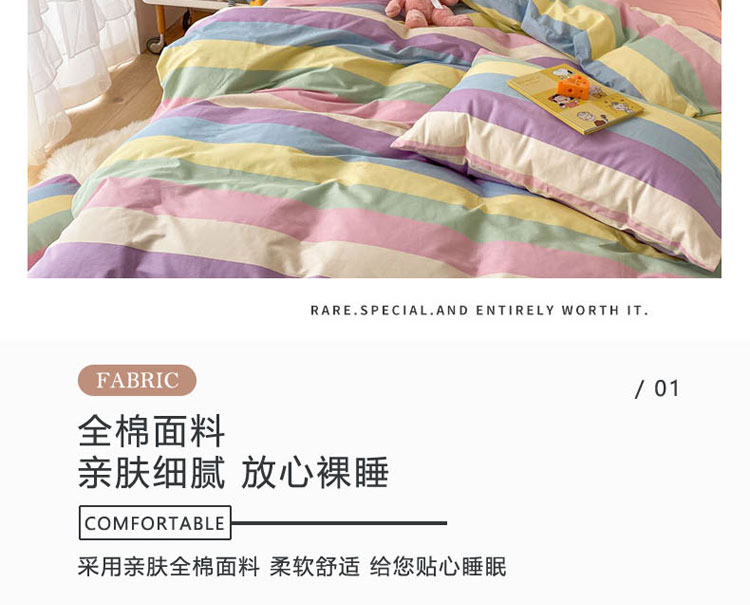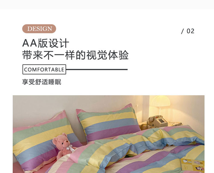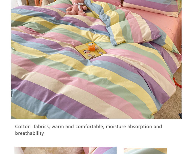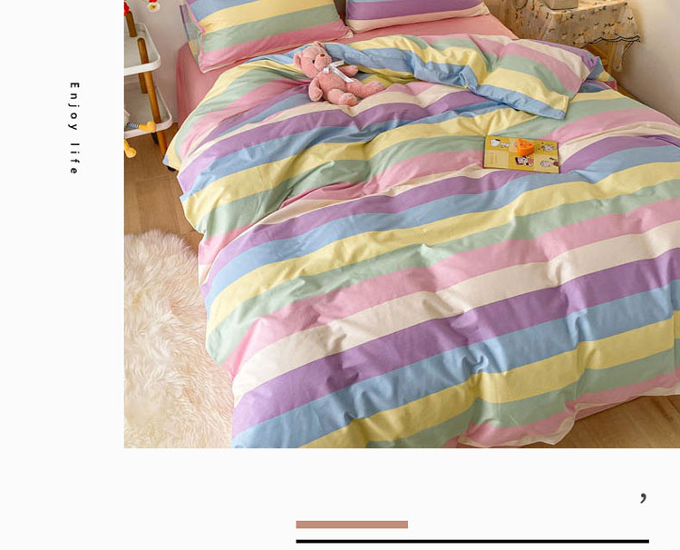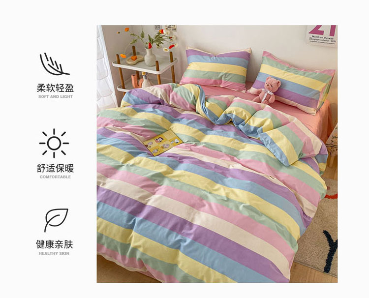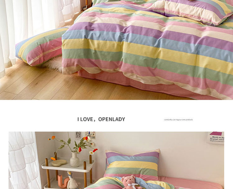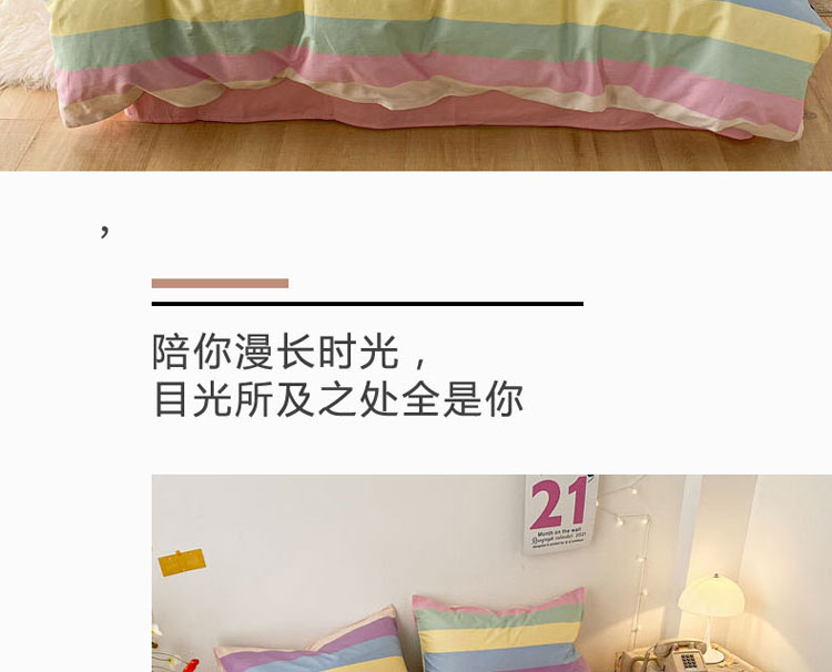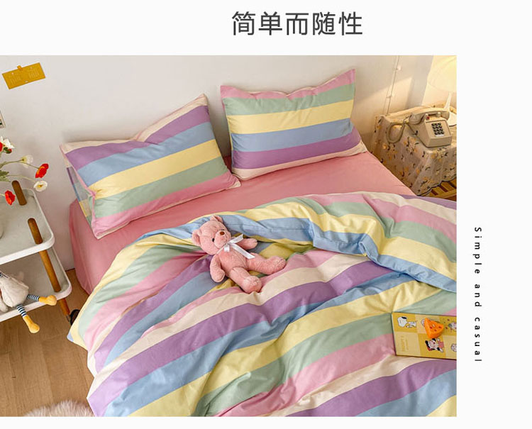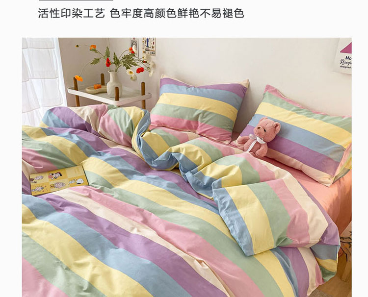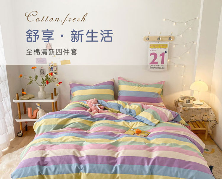 当前位置: 91家纺网 > 商品网购 > 床品套件 > 四件套 > 全棉普通四件套 > 梦家居 2021春季新品全棉小清新四件套 彩虹条纹