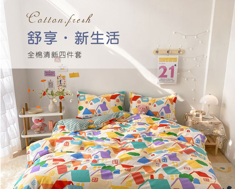 当前位置: 91家纺网 > 商品网购 > 床品套件 > 四件套 > 全棉普通四件套 > 梦家居 2021春季新品全棉小清新四件套 民宿
