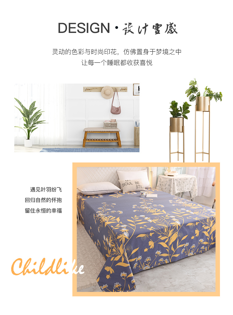 商品名称:甜之梦家纺 2025新款13372全棉印花床单羽叶