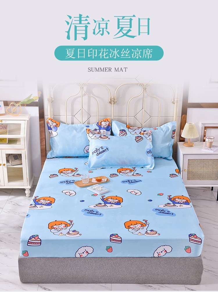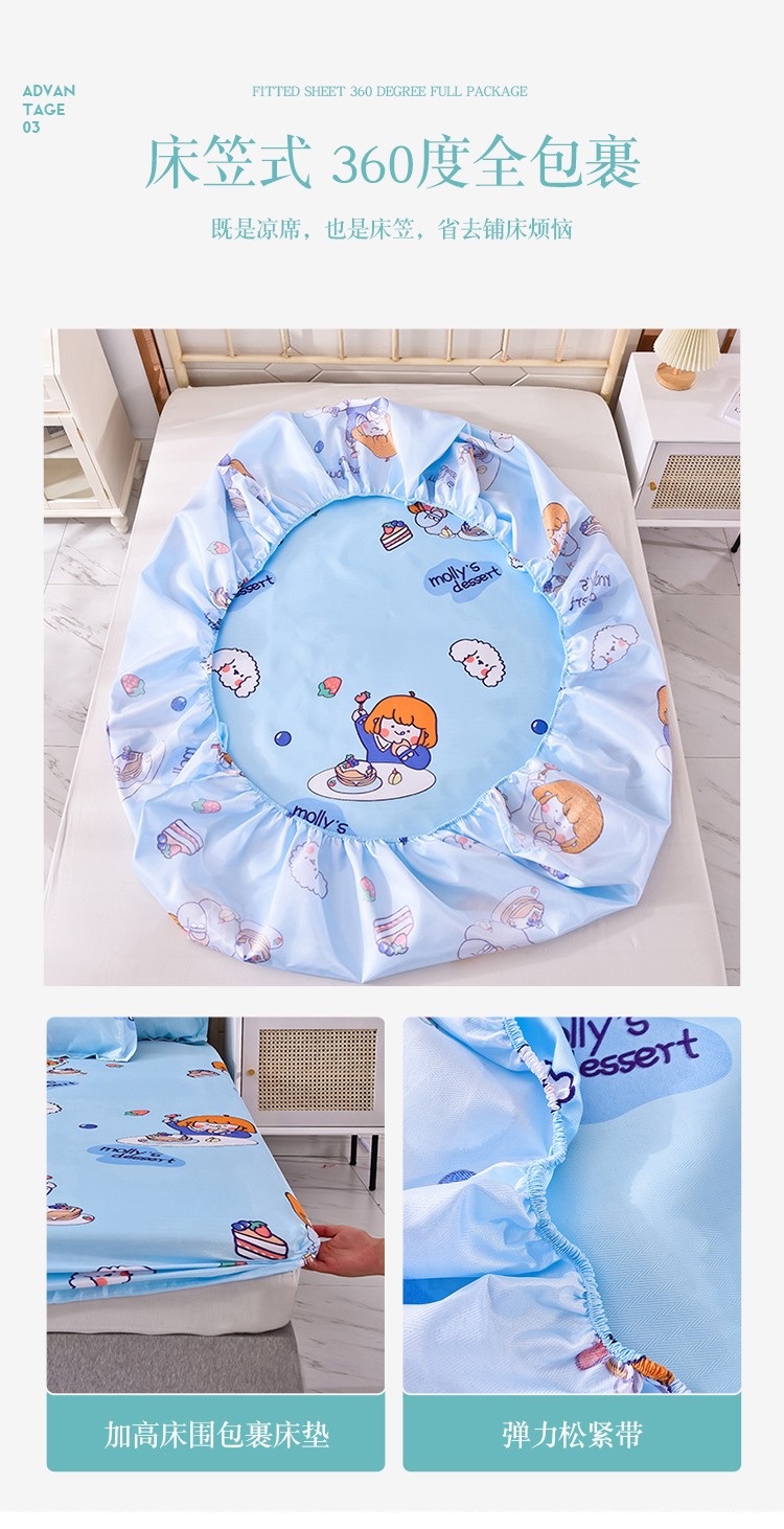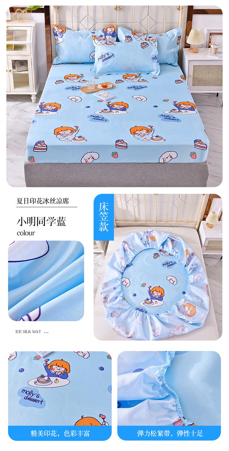 甜之梦家纺 2025新款印花冰丝单品凉席床笠款小明同学蓝
