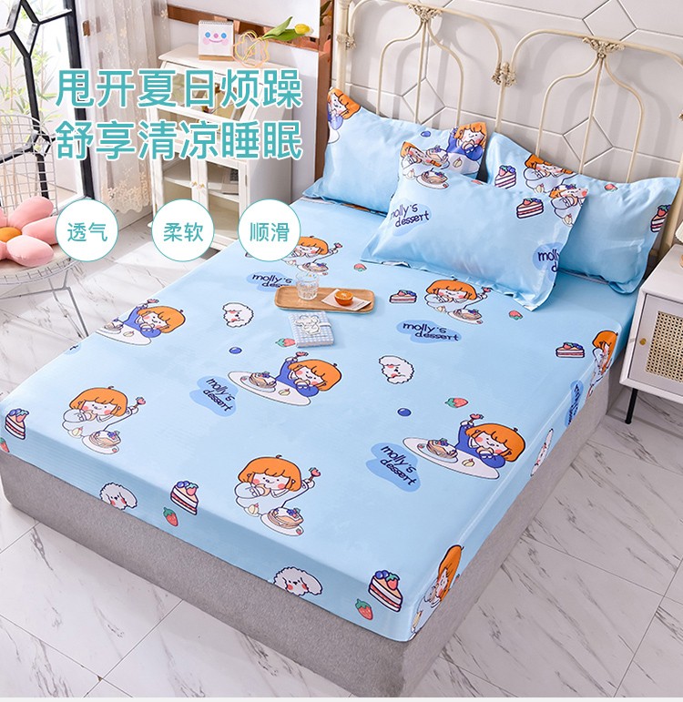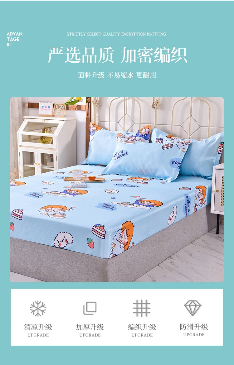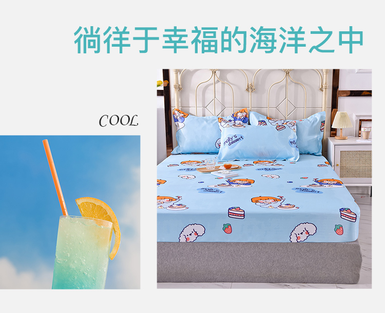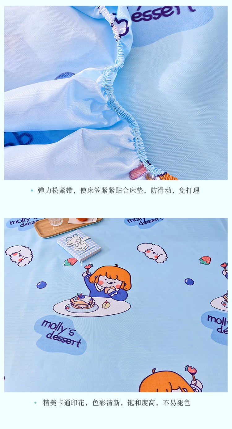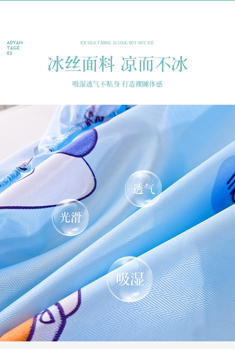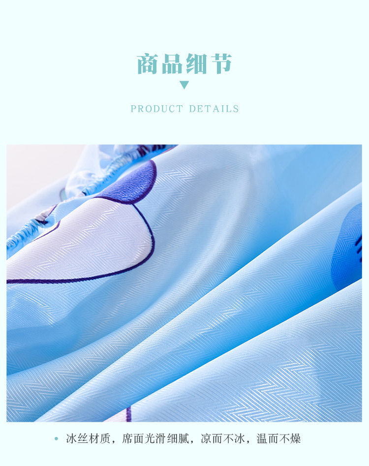 商品名称:甜之梦家纺 2025新款印花冰丝单品凉席床笠款小明同学蓝