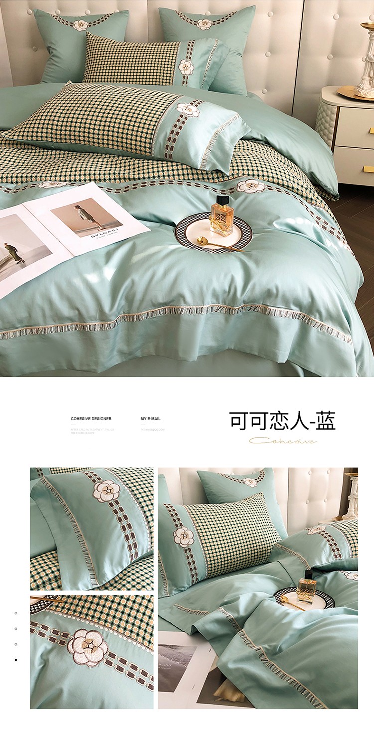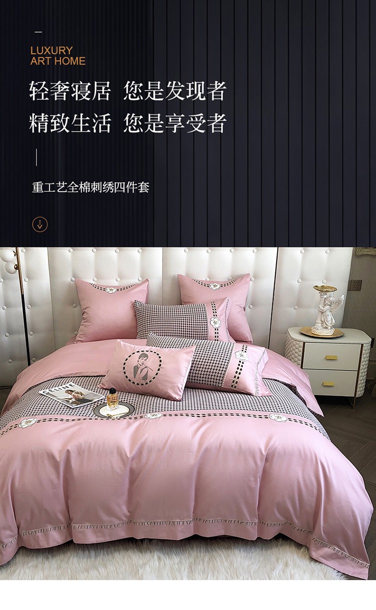 (总)品家居2021新款贝拉花园180支全棉澳棉刺绣四件套,贝拉花园-粉,贝拉花园-蓝