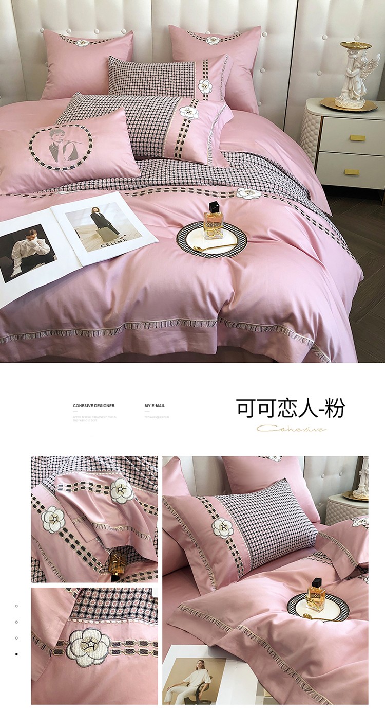 (总)品家居 2025新款180支长绒棉四件套可可系列,可可-粉,可可-蓝,可可-紫