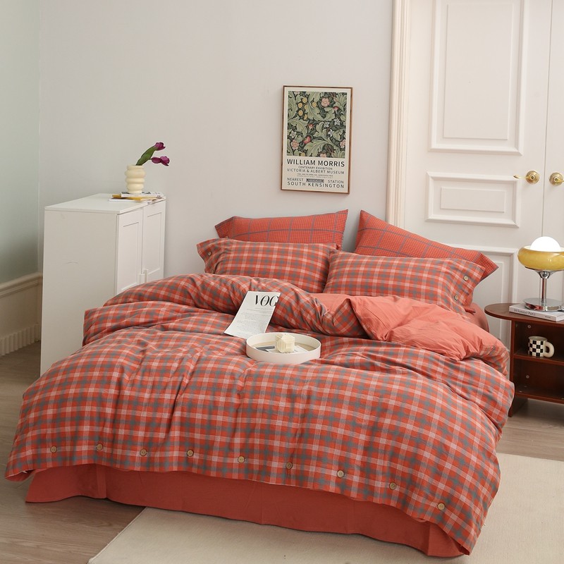 榻尚家居 2023新款经典田园格子色织水洗棉四件套系列 森宇(红小格)