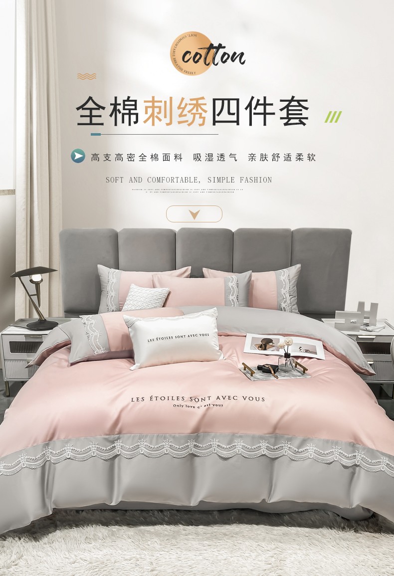 (总)2023新款全棉四件套-富贵花,奶昔白,温柔粉,星辰蓝