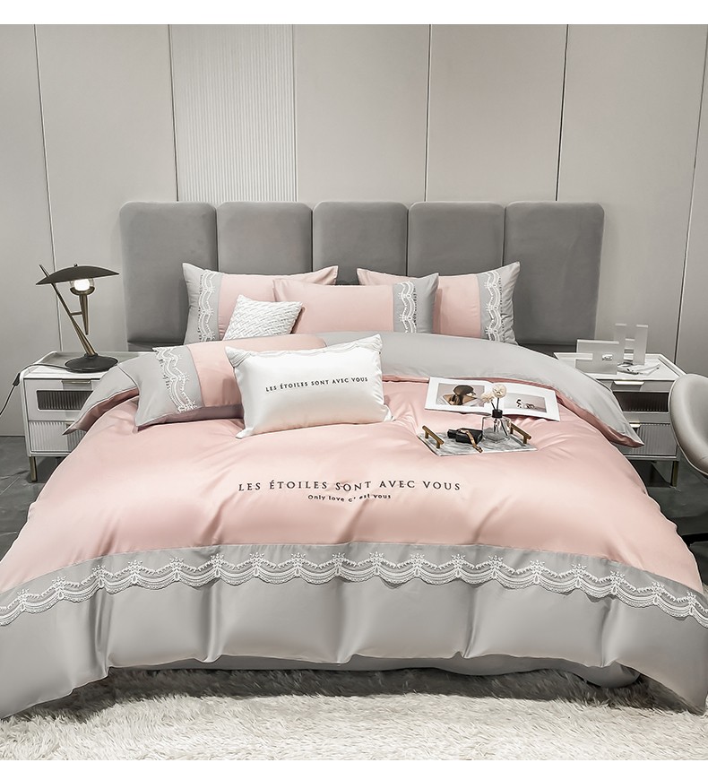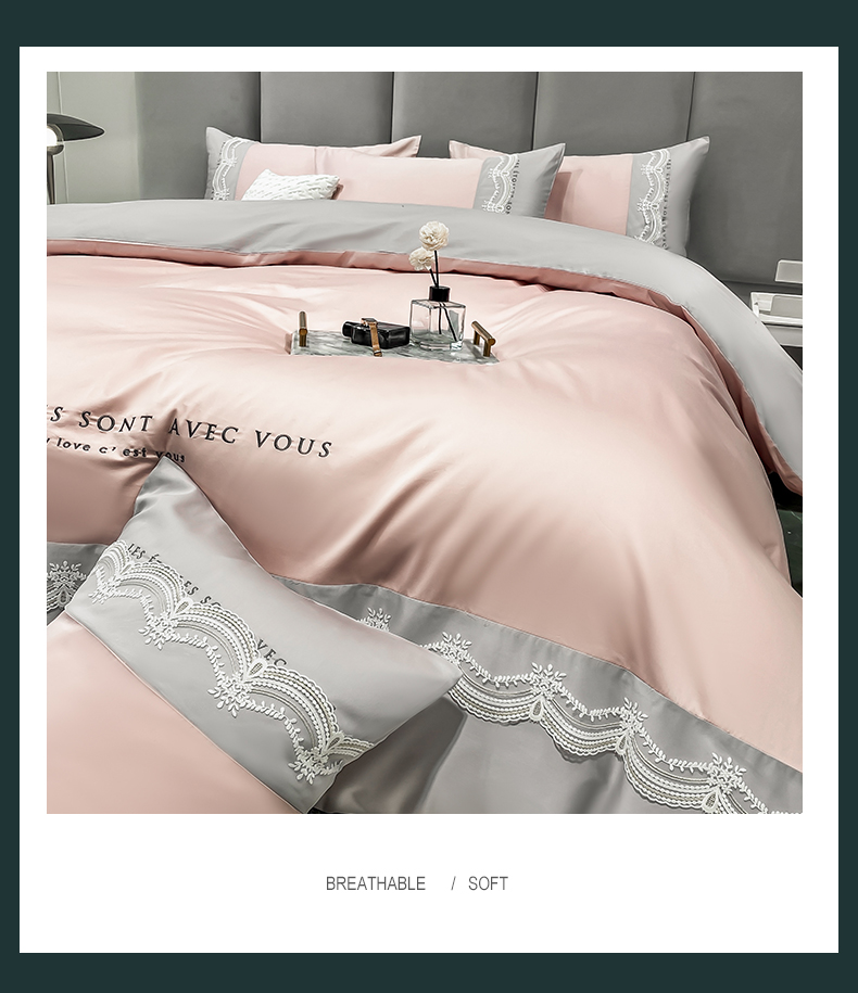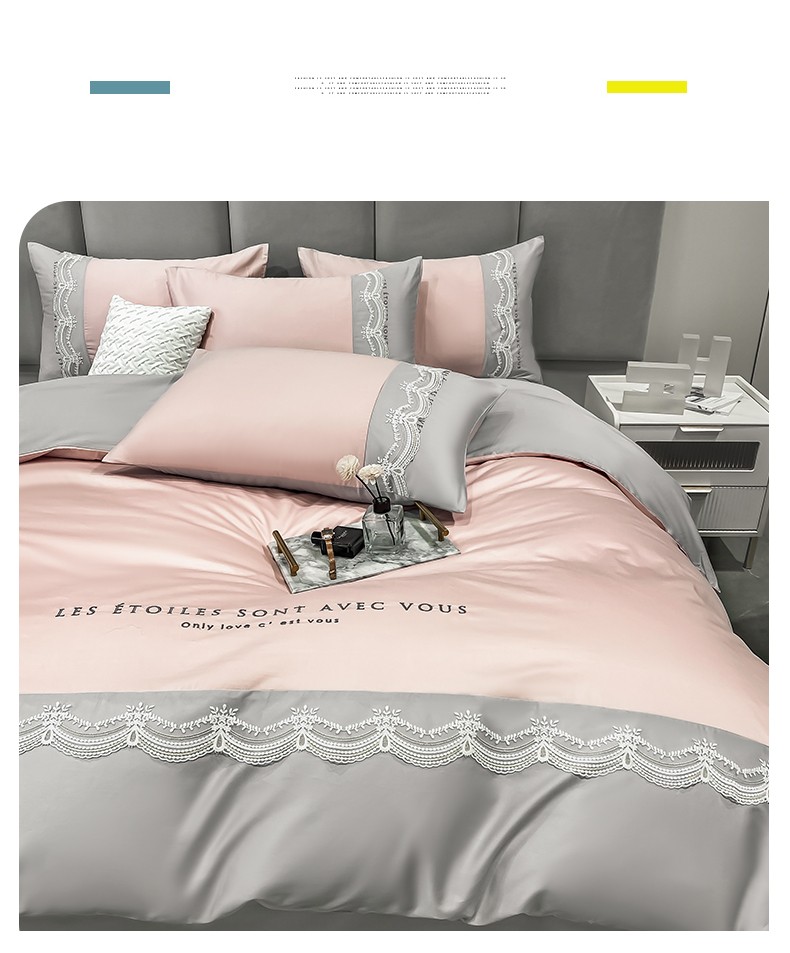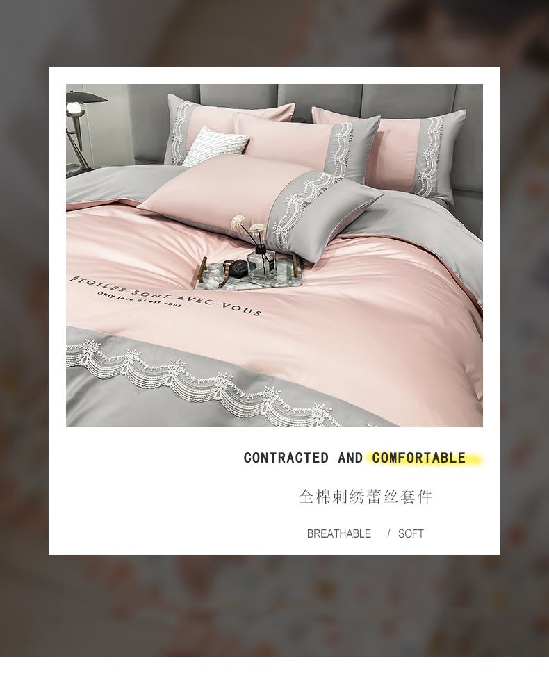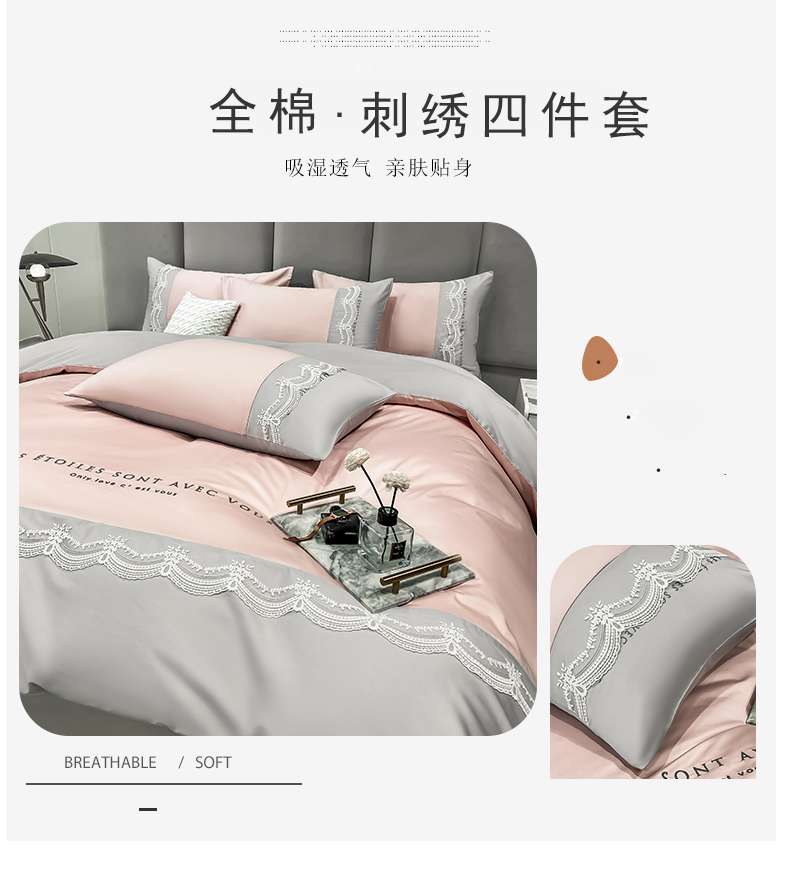 安妮 2022新款全棉刺绣蕾丝四件套-艾琳 艾琳-豆沙灰