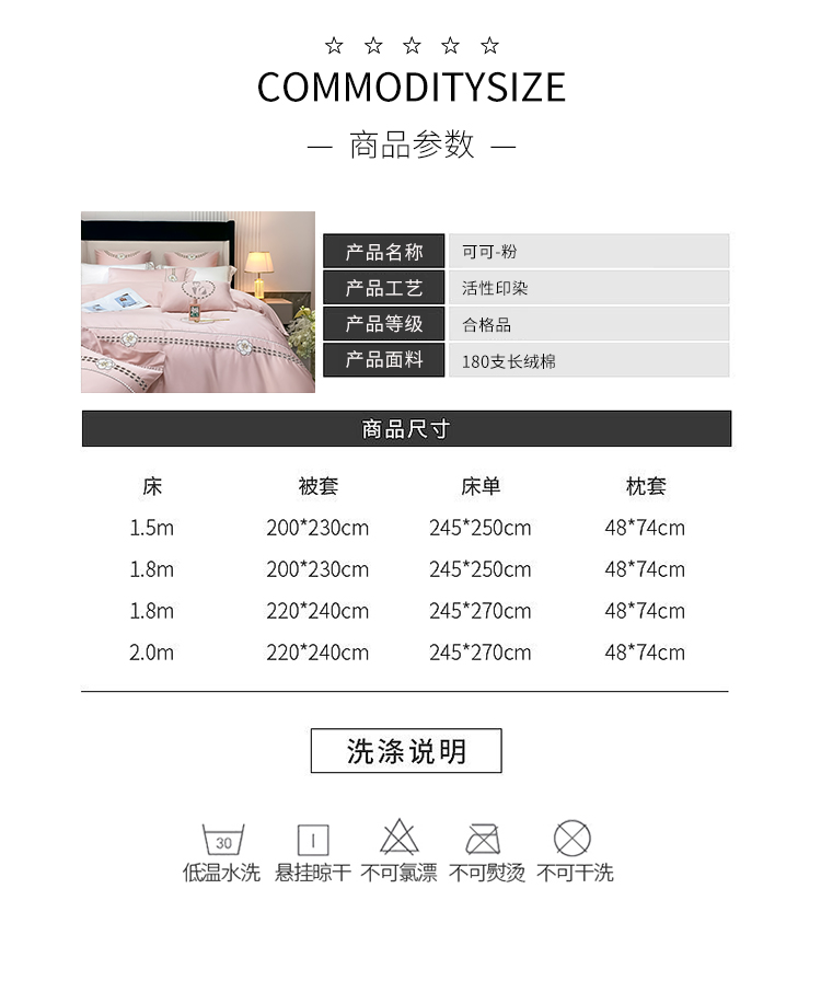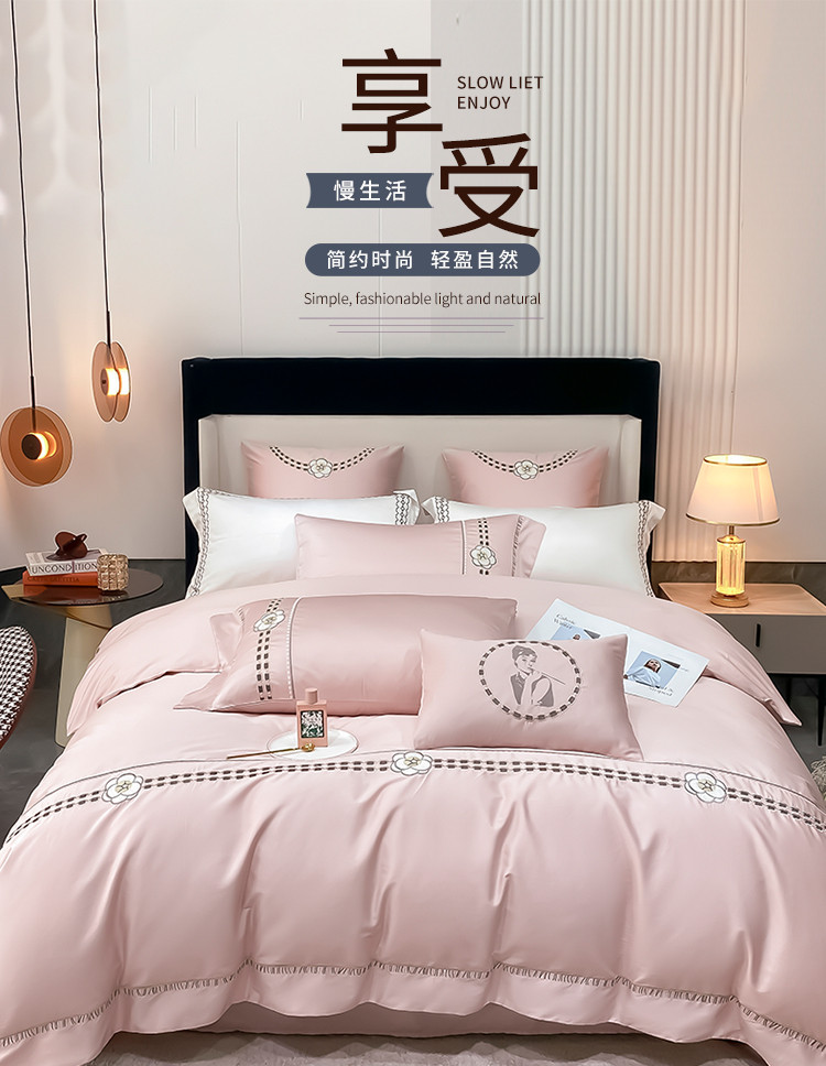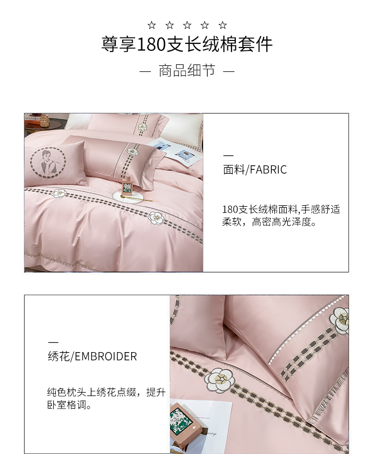 商品名称:品家居 2025新款180支长绒棉四件套可可系列 可可-粉