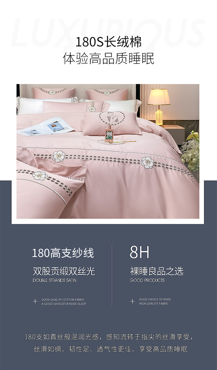 (总)品家居2021新款贝拉花园180支全棉澳棉刺绣四件套,贝拉花园-粉,贝拉花园-蓝