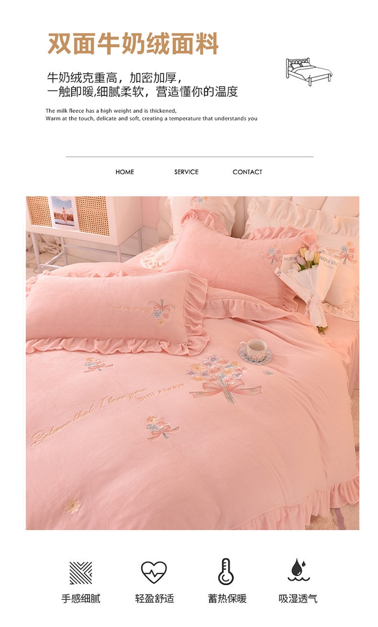 (总)迪欧芙 2023新款牛奶绒刺绣花边四件套-花絮
