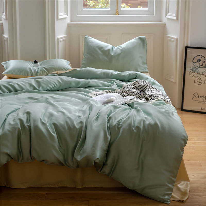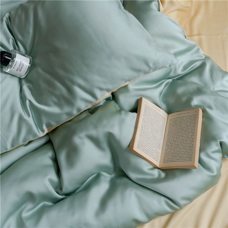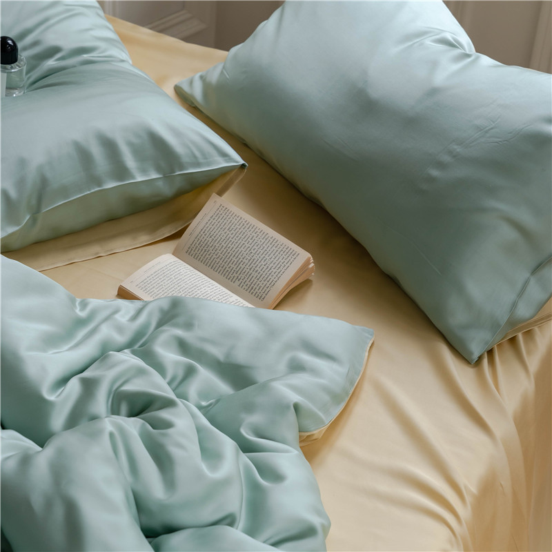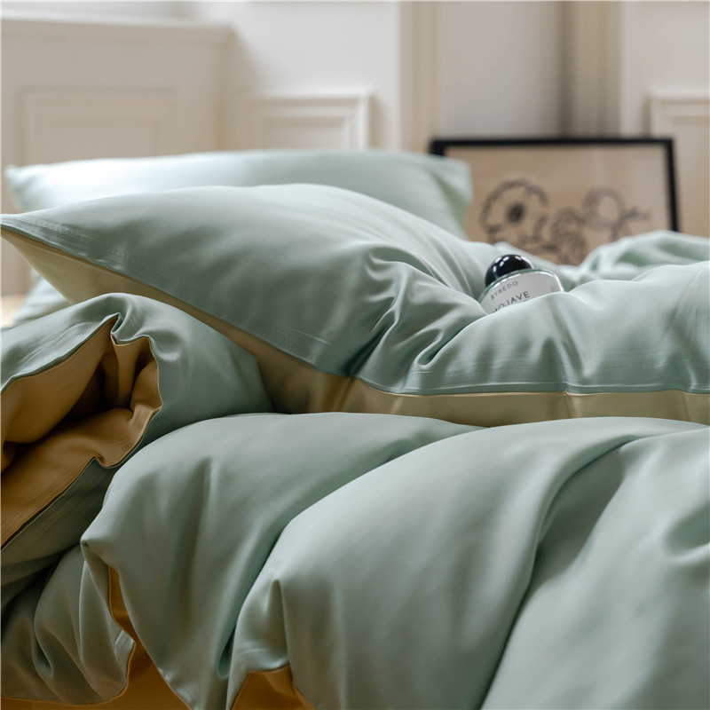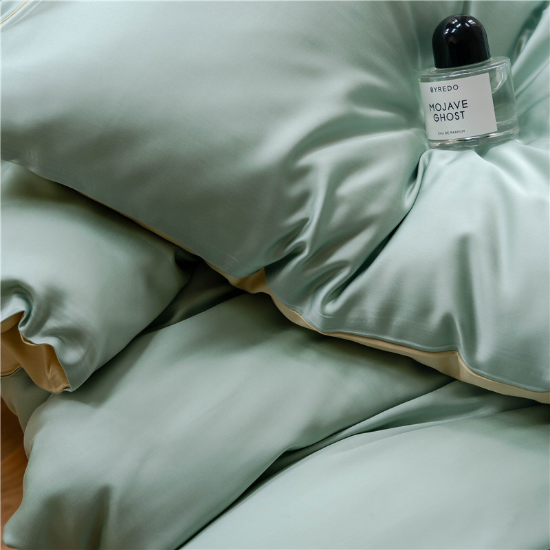 商品名称:沐白 60S纯色天丝四件套 浅艾绿-香槟金