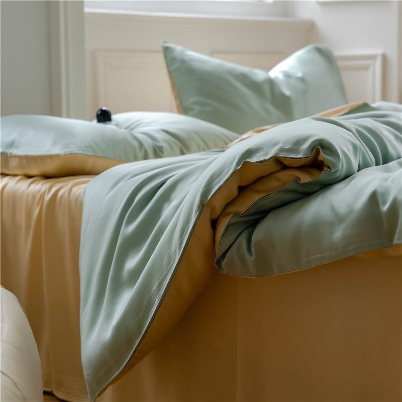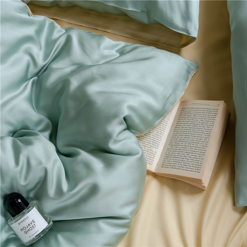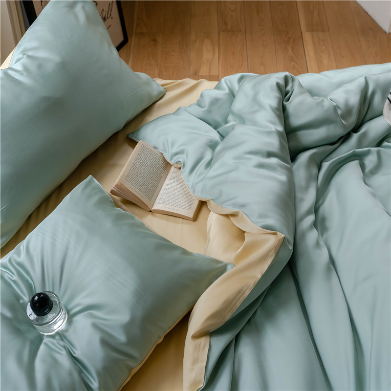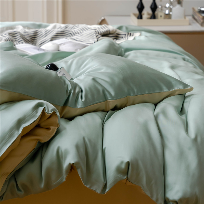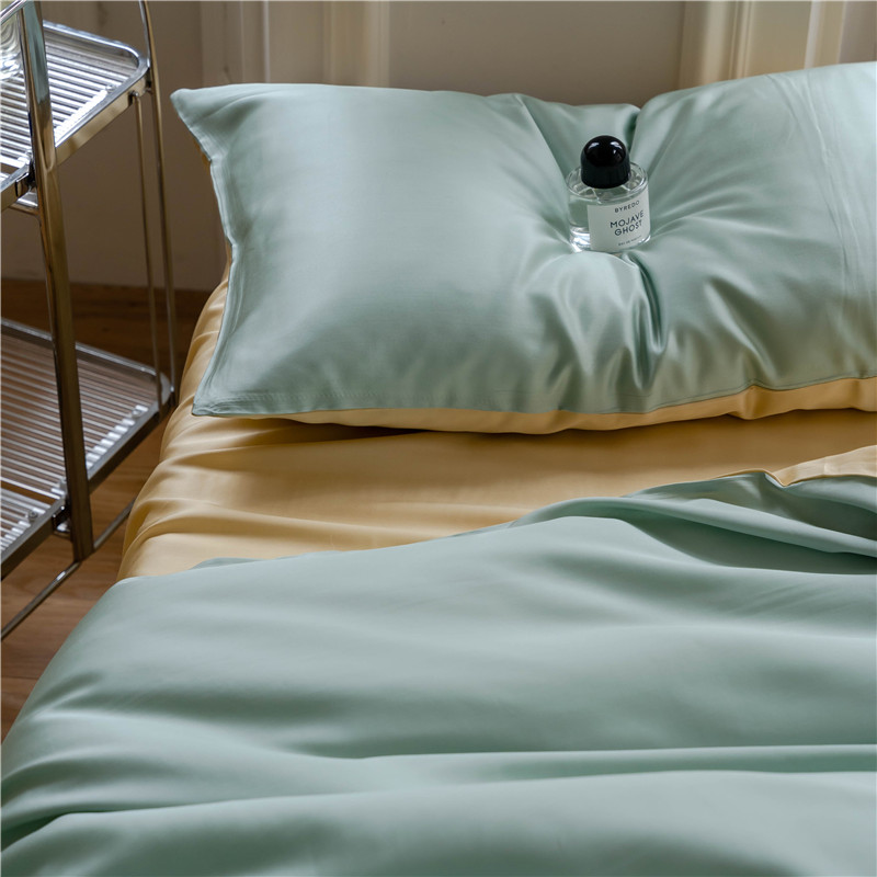 商品名称:沐白 60S纯色天丝四件套 浅艾绿-香槟金