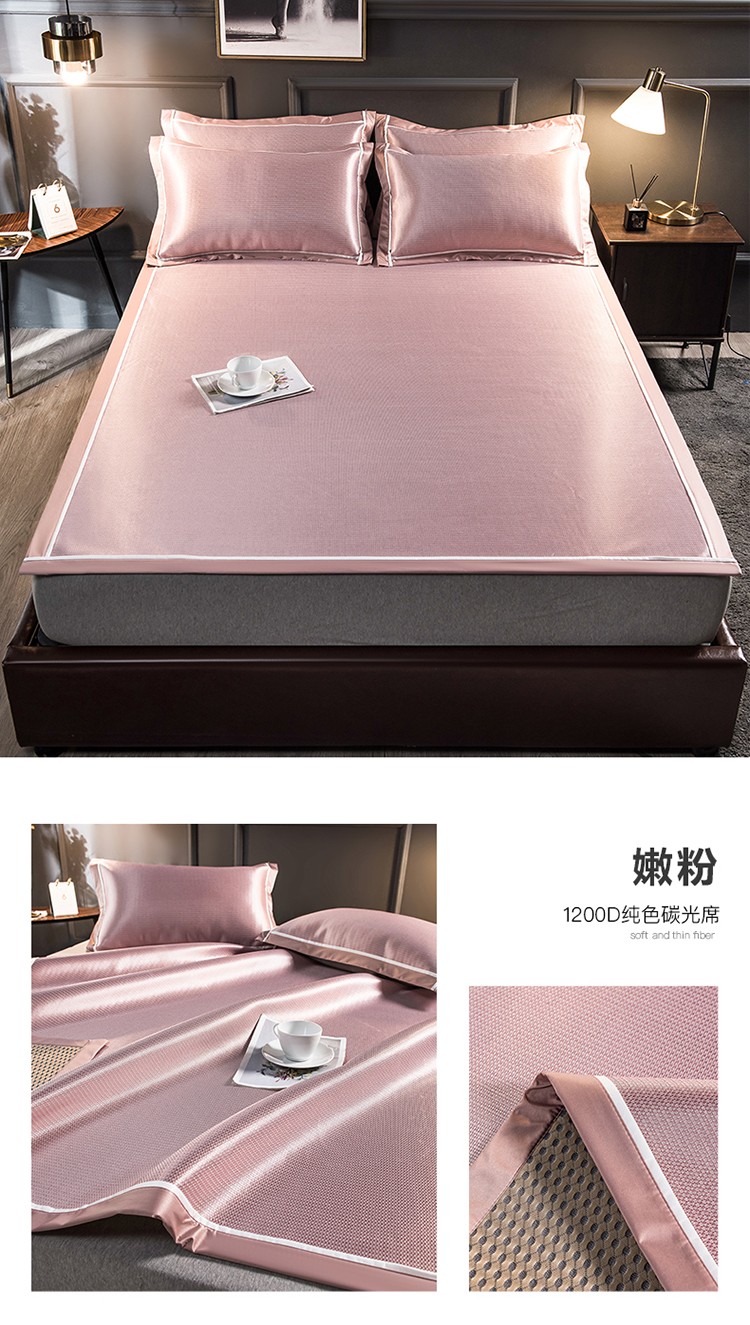 (总)印季家纺 2025新款纯色加密冰藤床裙凉席,粉色,灰色,咖啡,浅紫,水绿,天蓝