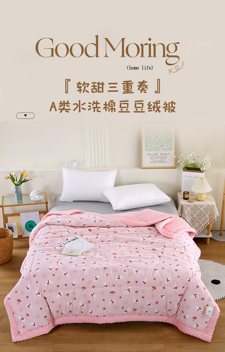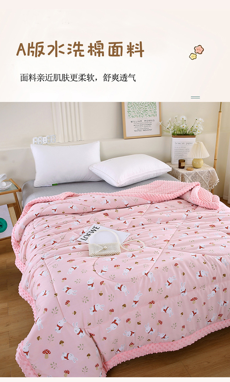 • 91家纺网 家纺一手货源 找家纺 欧朵 2023新款豆豆夏被冬被被子被芯 粉小兔