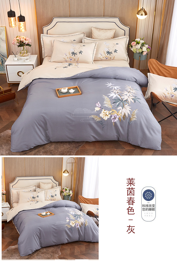 沐白家居2023大版全棉印花四件套 2莱茵春色-灰