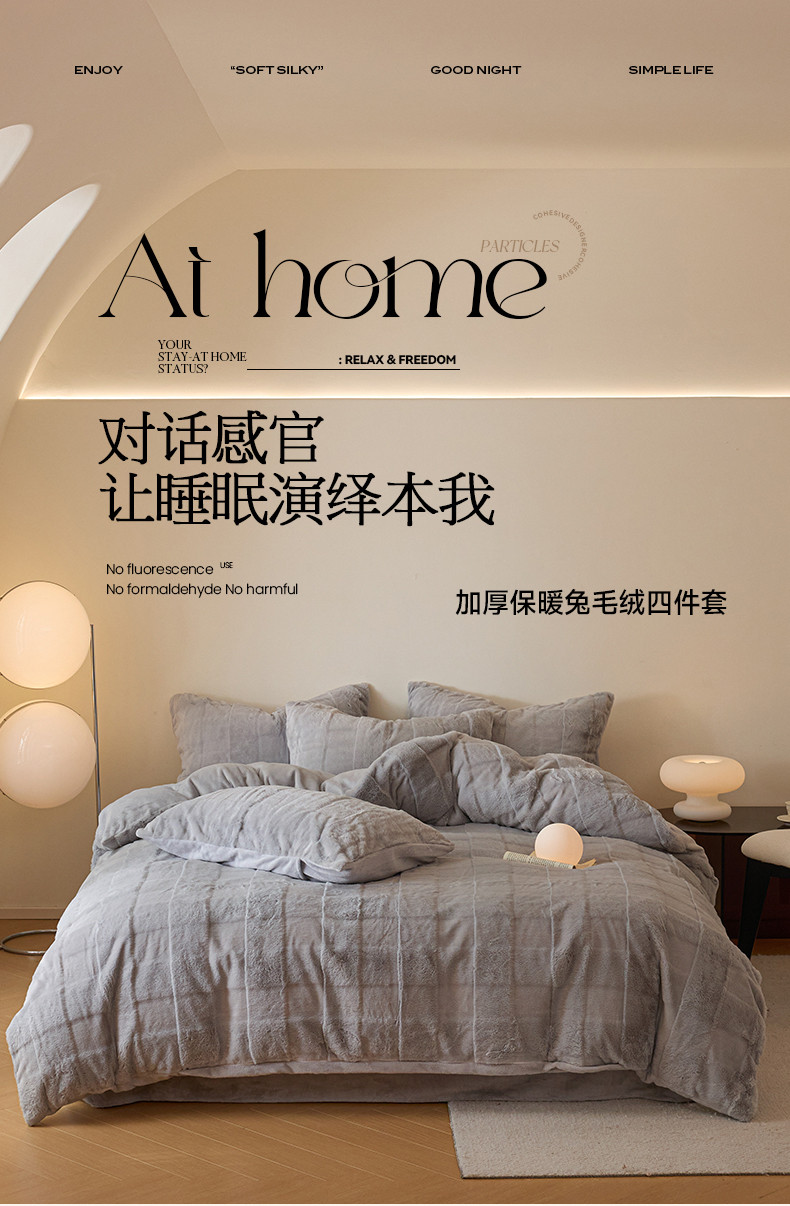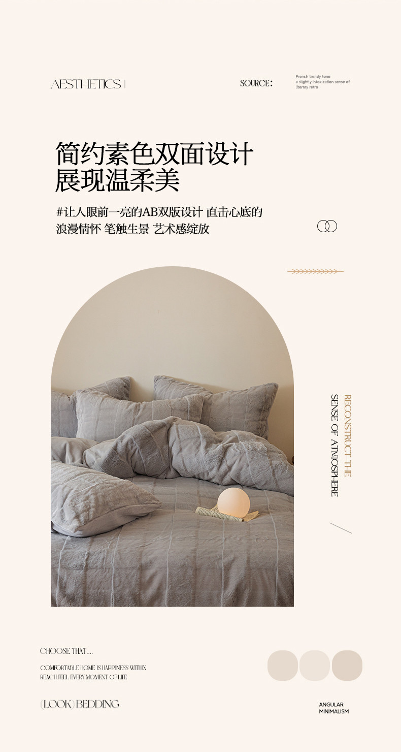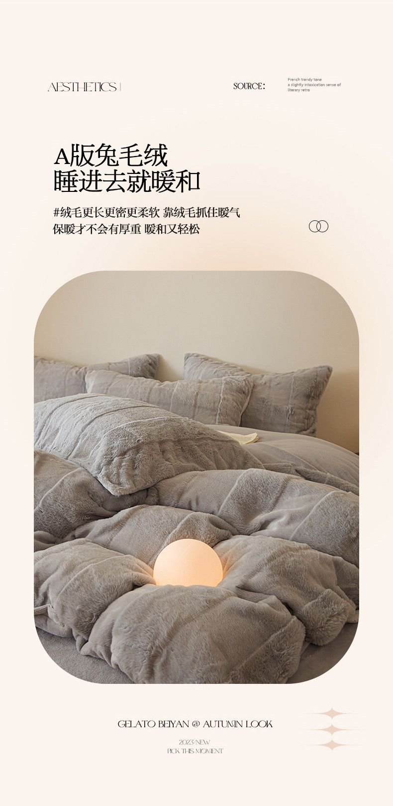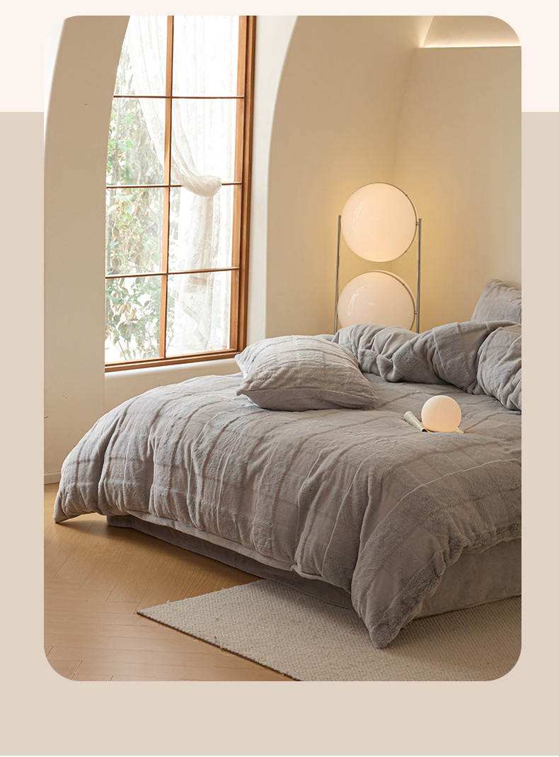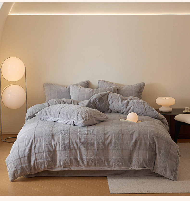 商品名称:沐棉 2023新款秋冬加厚保暖兔毛绒牛奶绒四件套 方格-灰