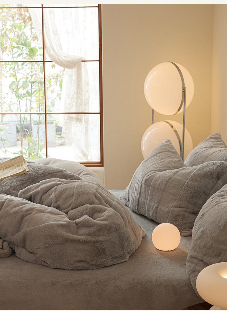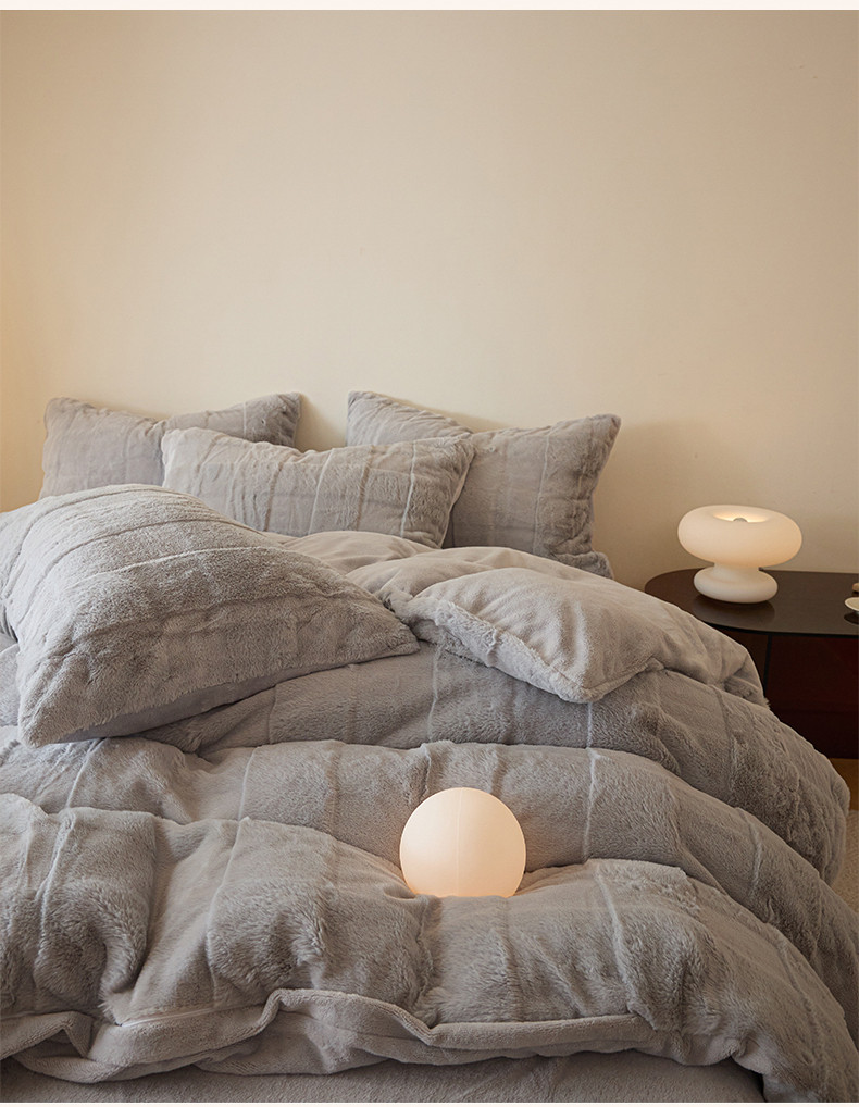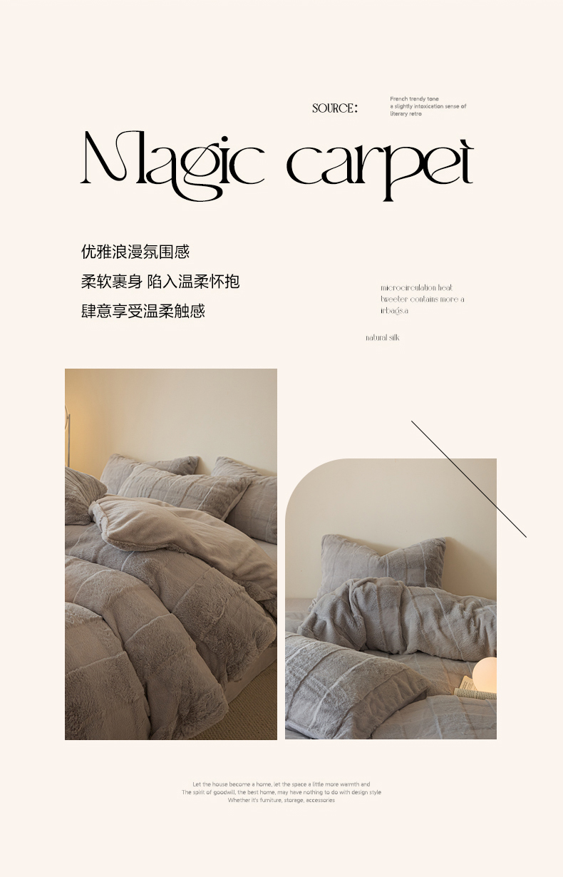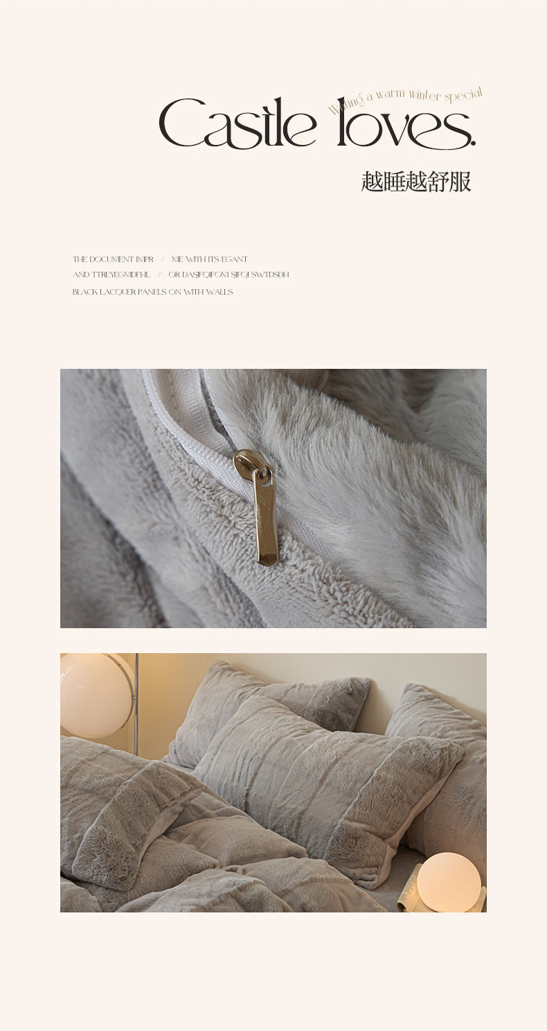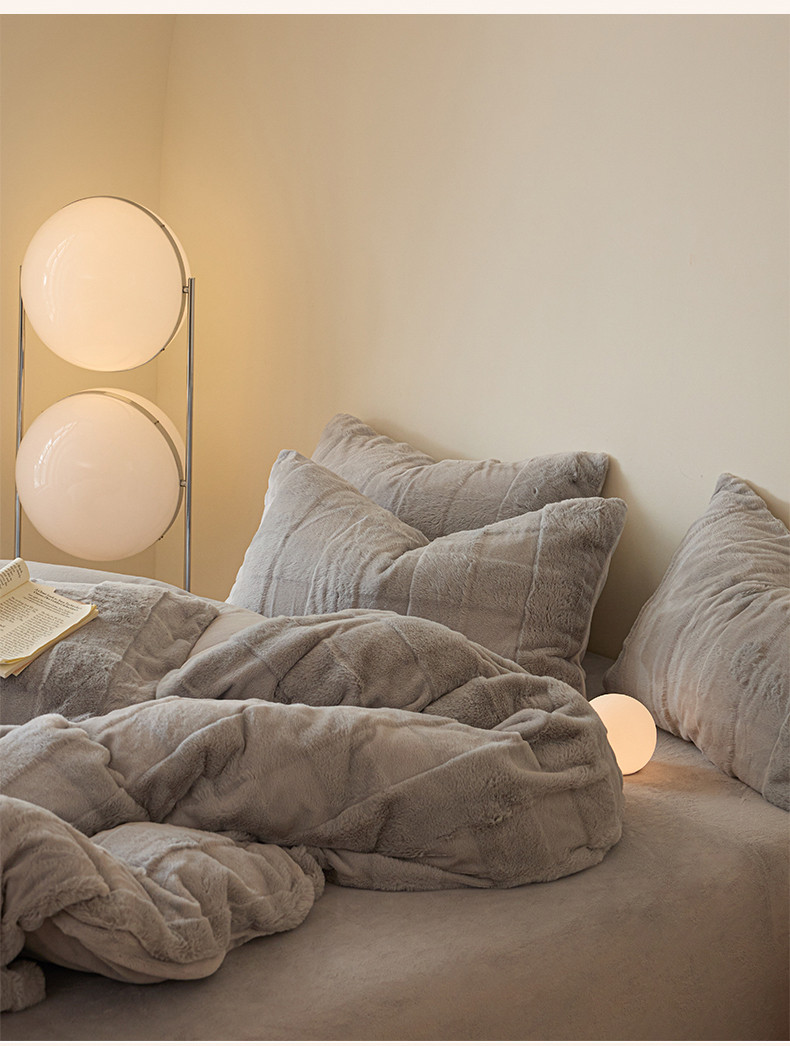 商品名称:沐棉 2023新款秋冬加厚保暖兔毛绒牛奶绒四件套 方格-灰