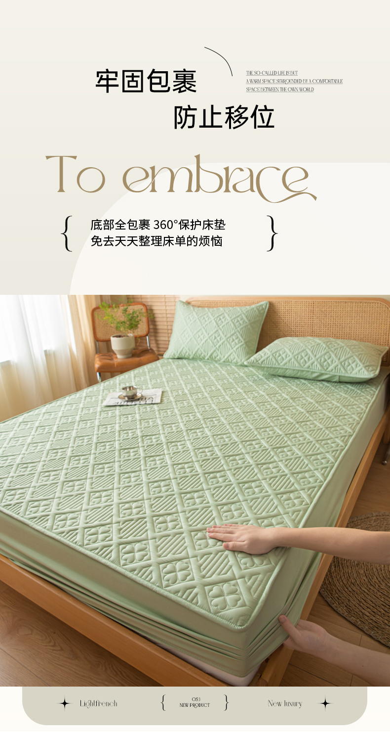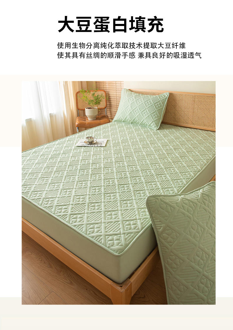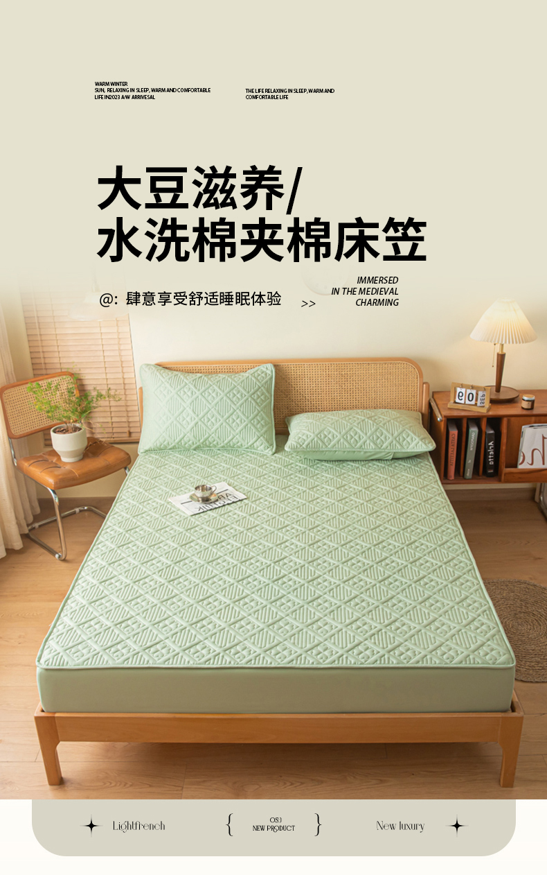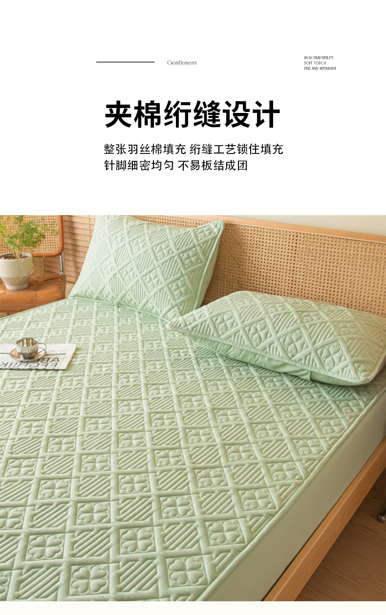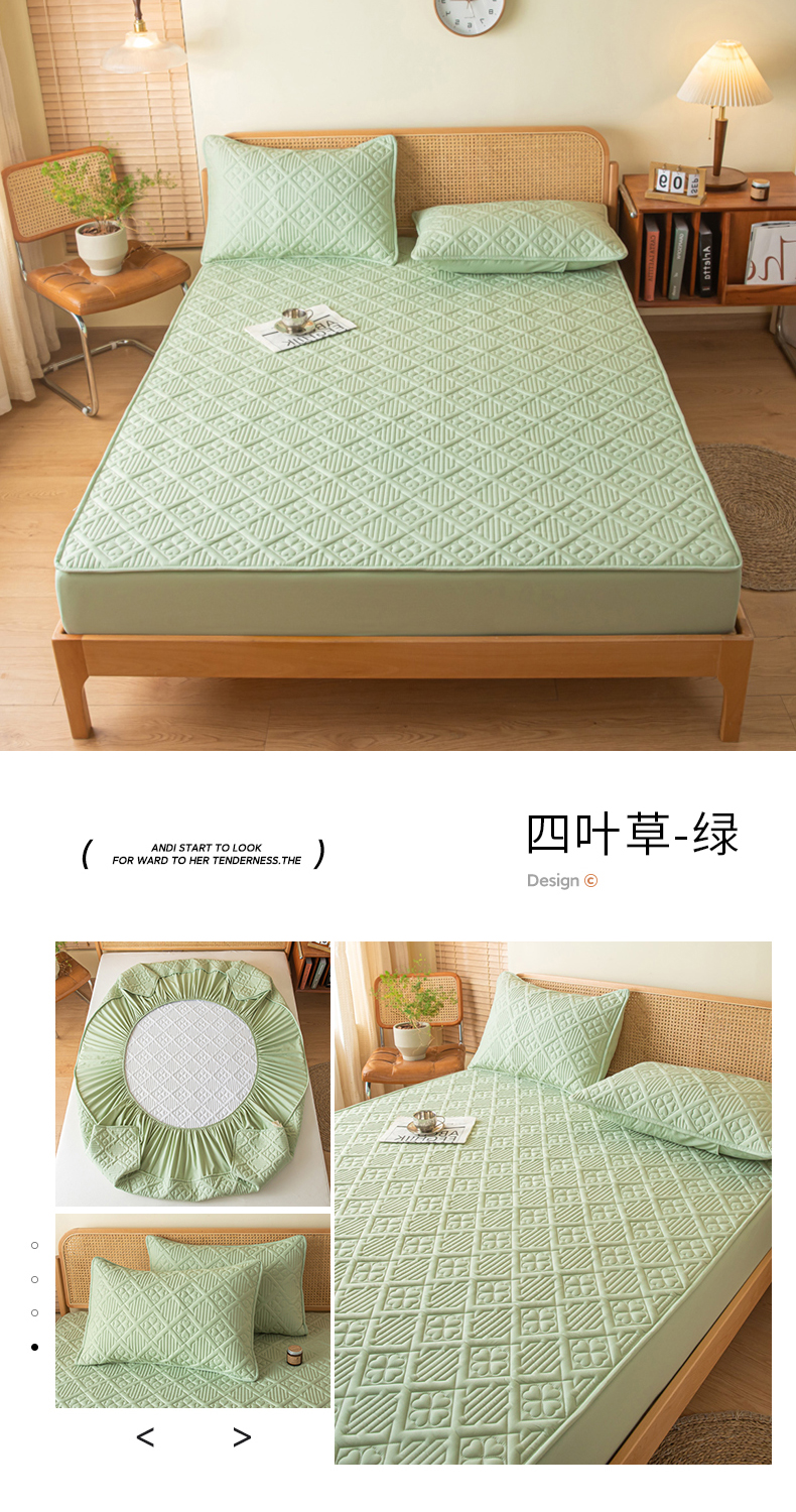 商品名称:吉祥家纺 2023新款水洗棉夹棉床笠 四叶草-绿