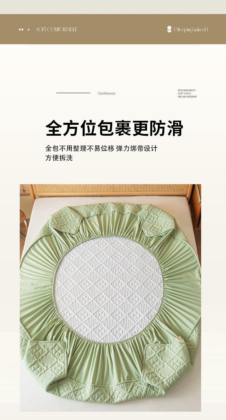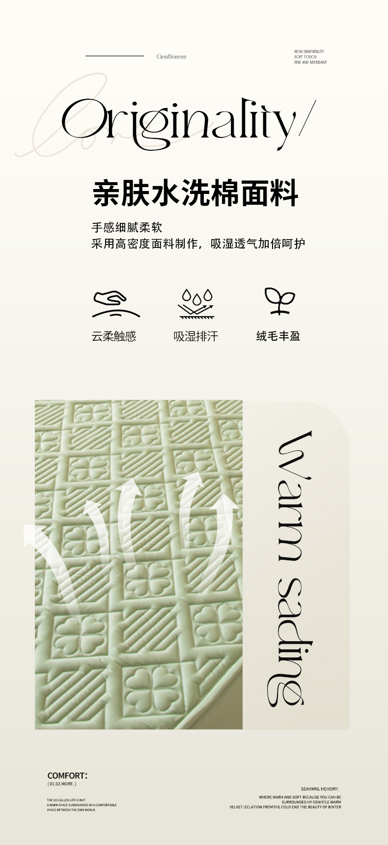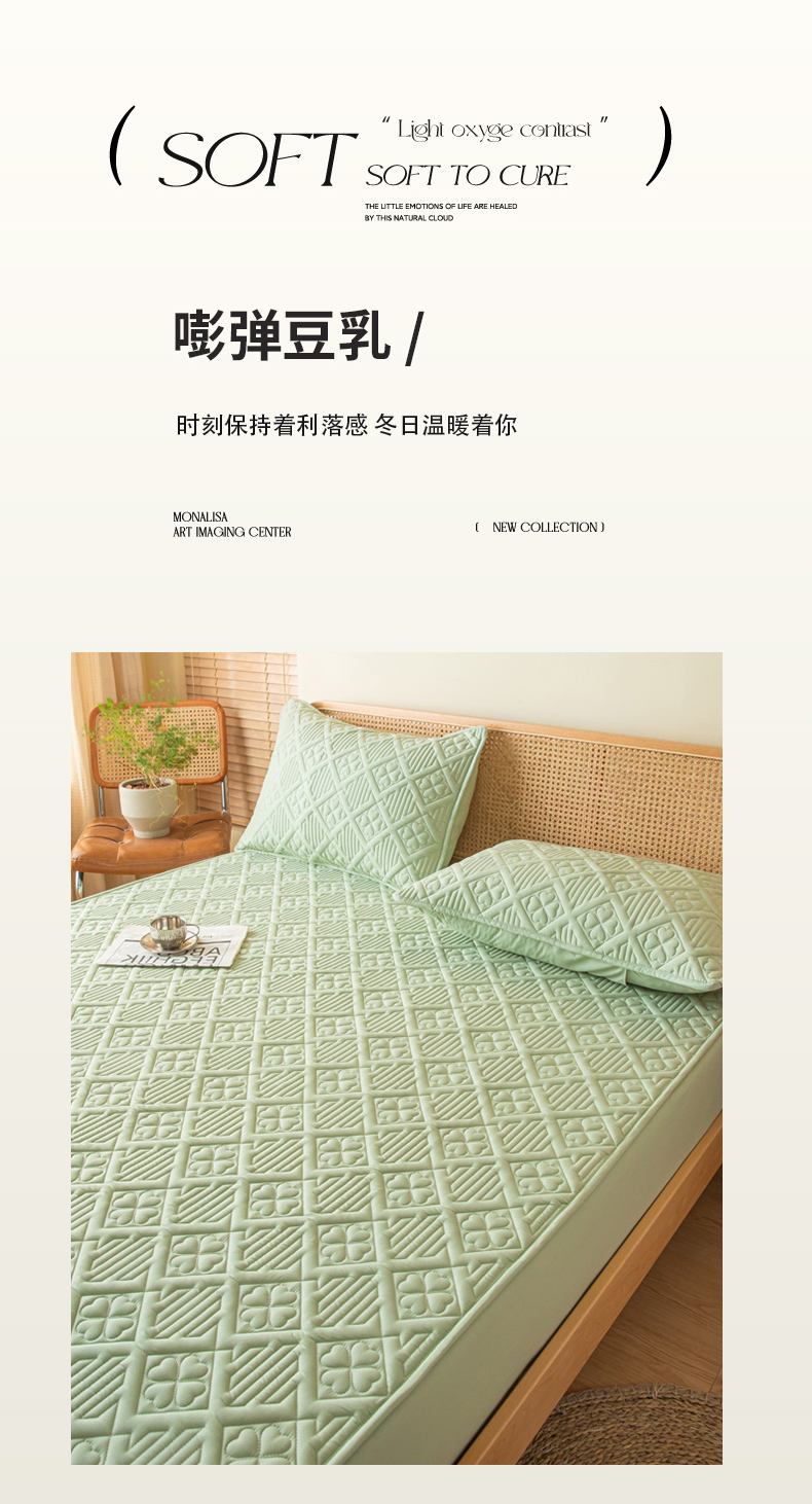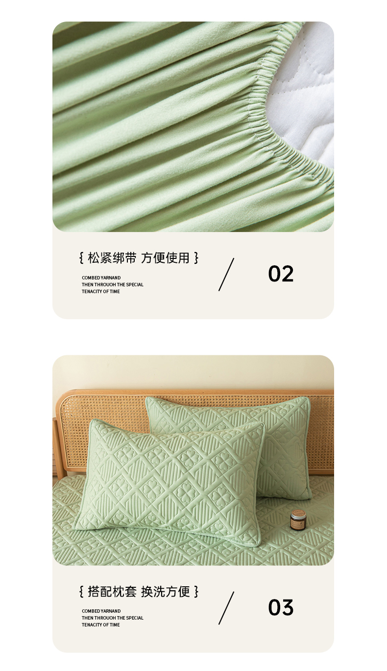 商品名称:吉祥家纺 2023新款水洗棉夹棉床笠 四叶草-绿