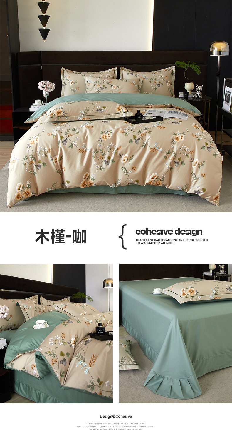 沐白 2024新款全棉全棉13376全活性印花黄金棉系列四件套 木槿-咖