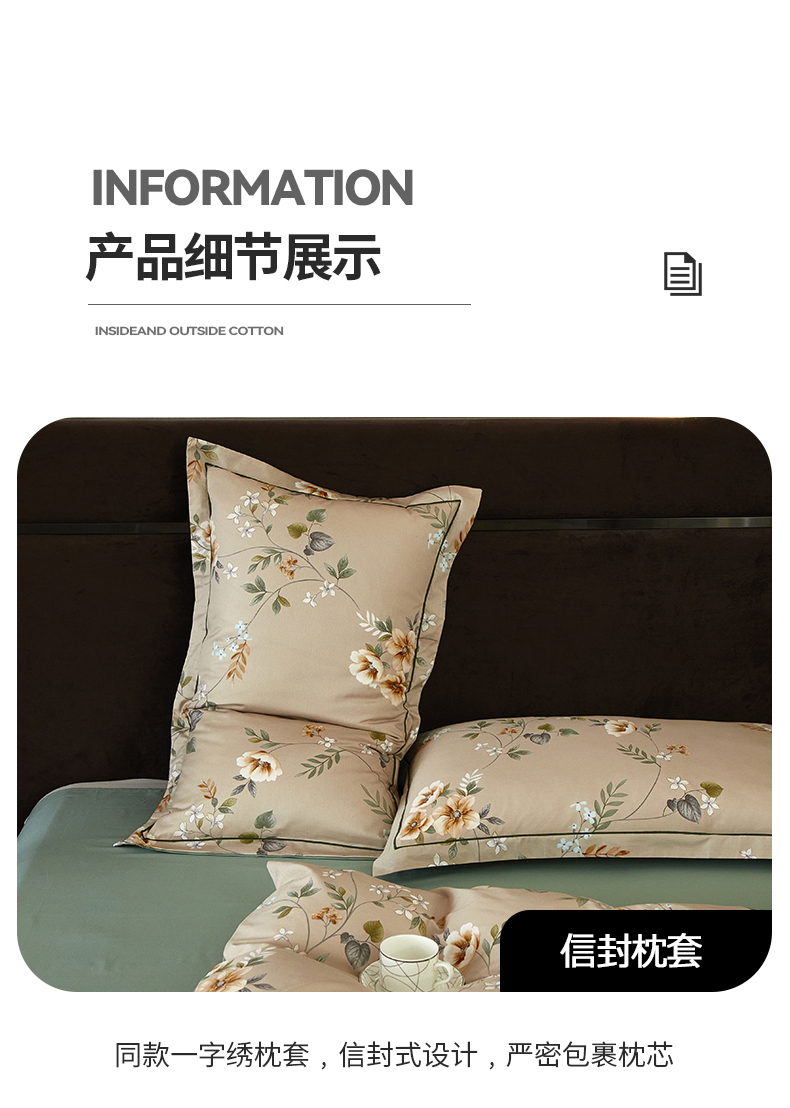 商品名称:沐白 2024新款全棉全棉13376全活性印花黄金棉系列四件套 木槿-咖