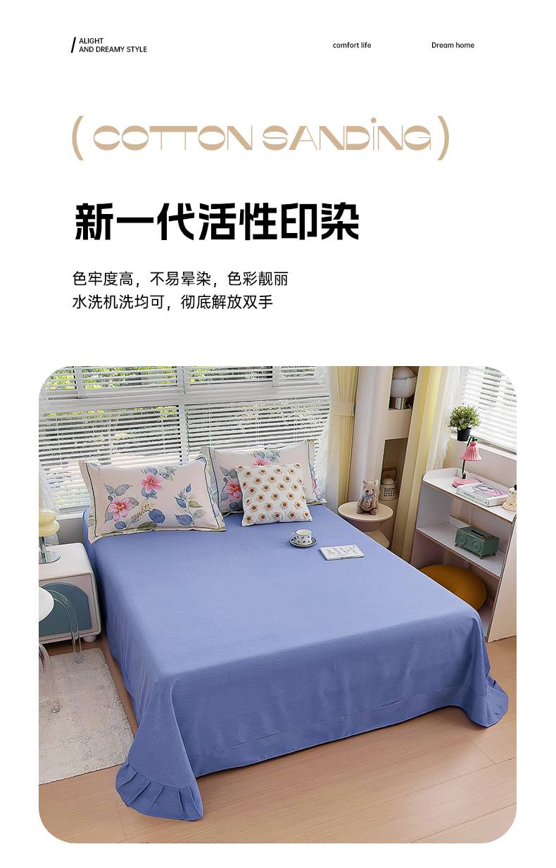 • 91家纺网 家纺一手货源 找家纺 优品阁 2024新款亲肤舒适全棉磨毛单床单 茗澜