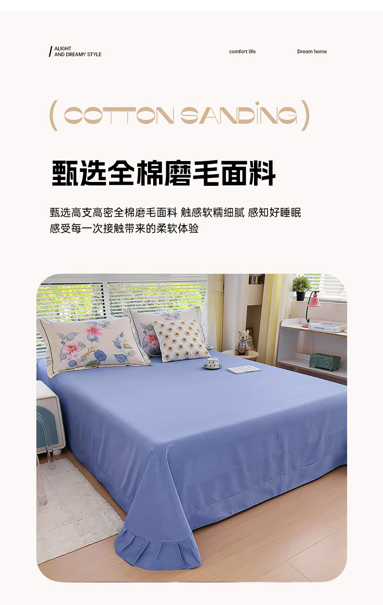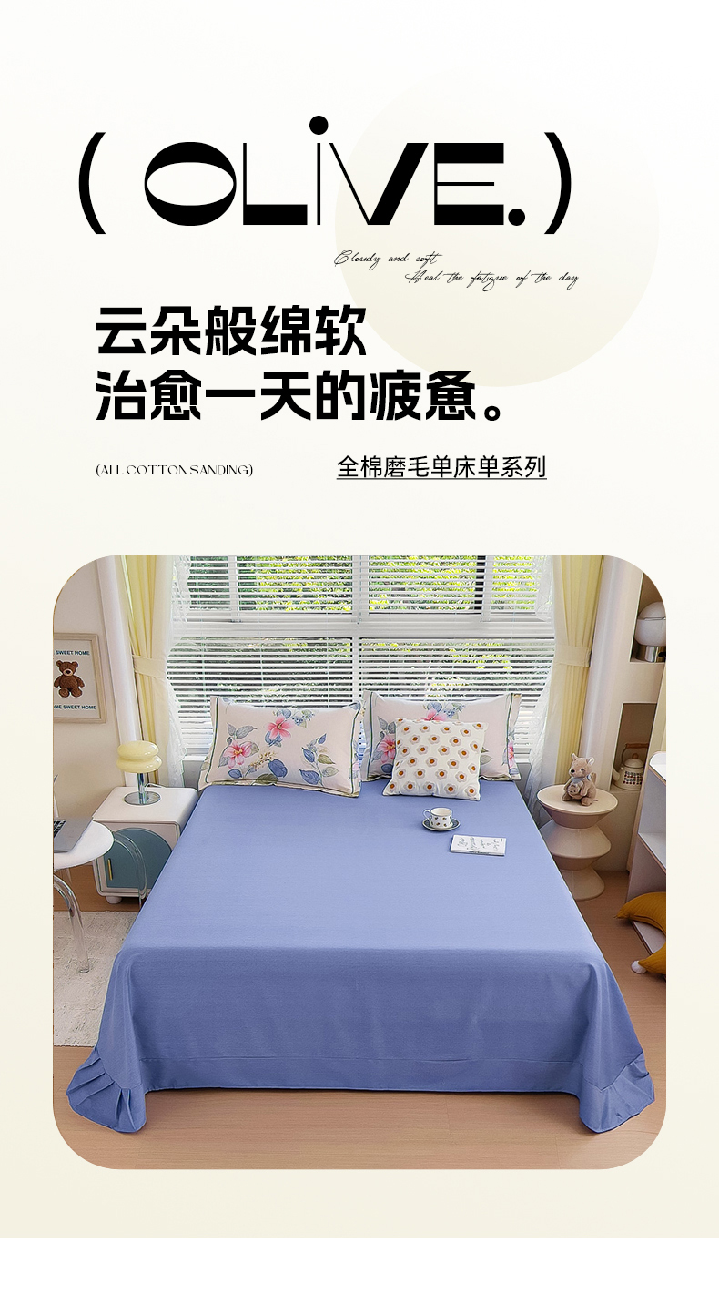 优品阁 2024新款亲肤舒适全棉磨毛单床单 茗澜