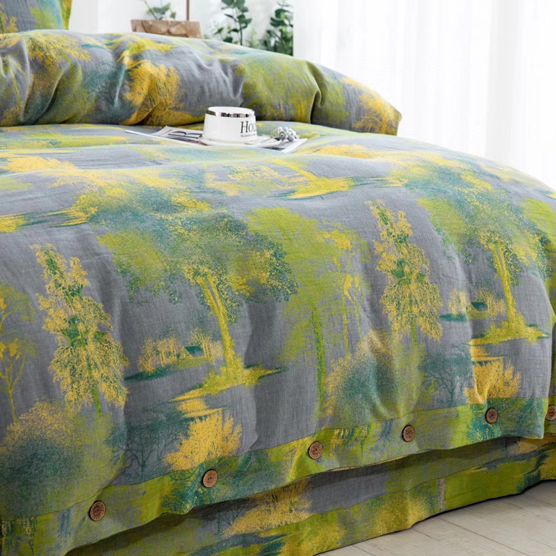 商品名称:双层纱家居 2024新款大花系列四件套 漫步森林-灰