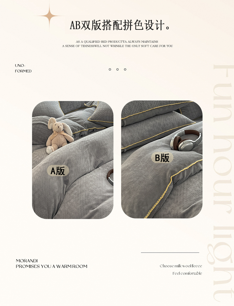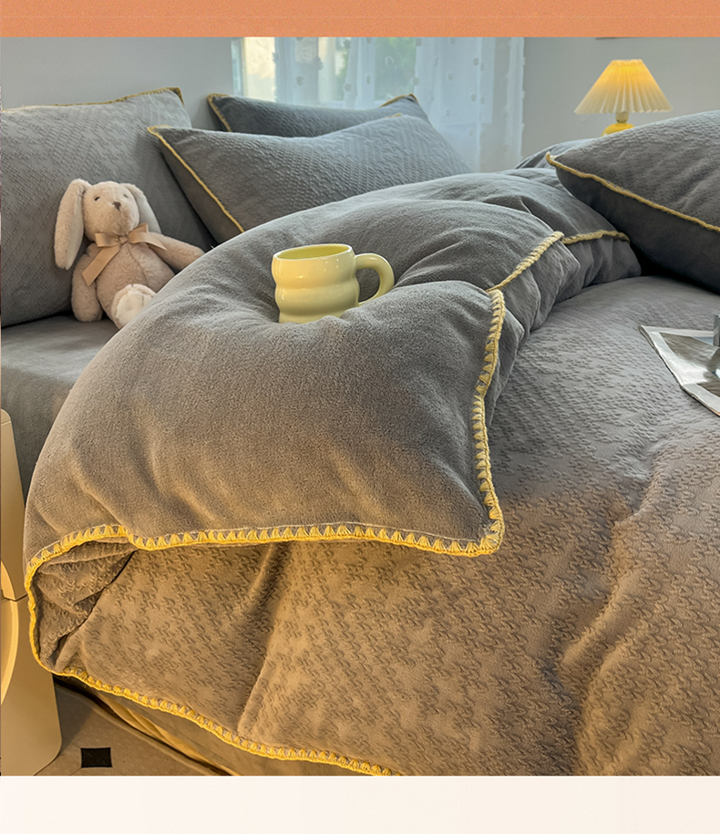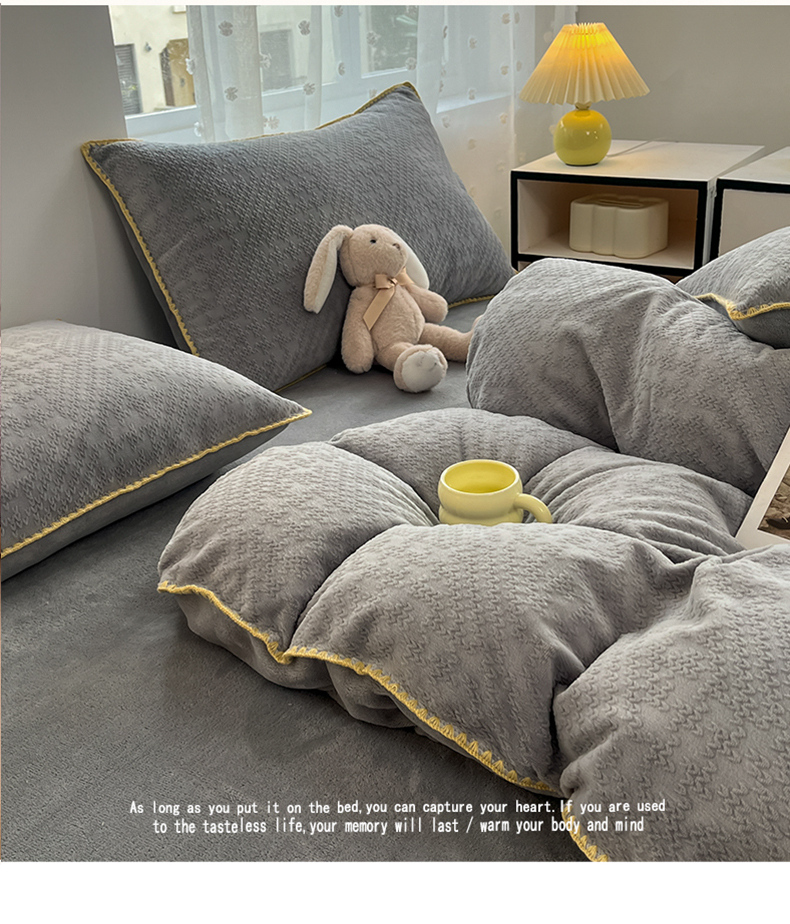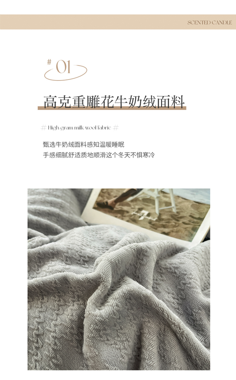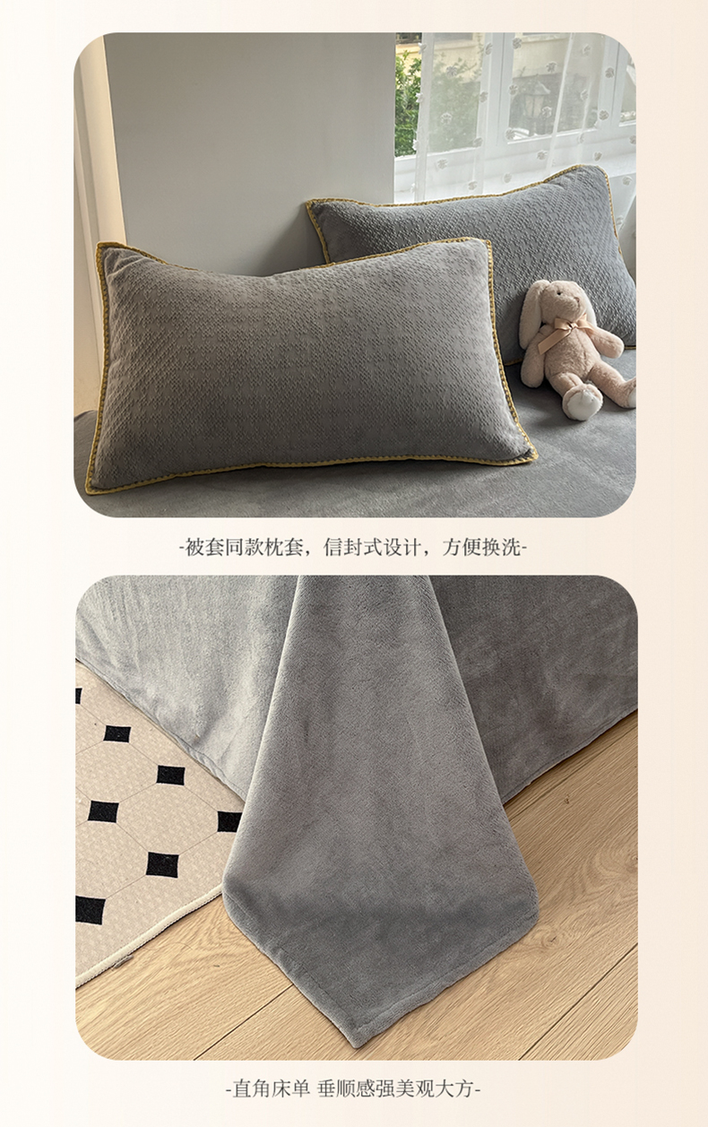 当前位置: 91家纺网 > 商品网购 > 床品套件 > 四件套 > 牛奶绒四件套 > 晚依家纺 2024新款230g纯色立体雕花牛奶绒四件套贝壳边加厚保暖定制定做 语格-石英灰