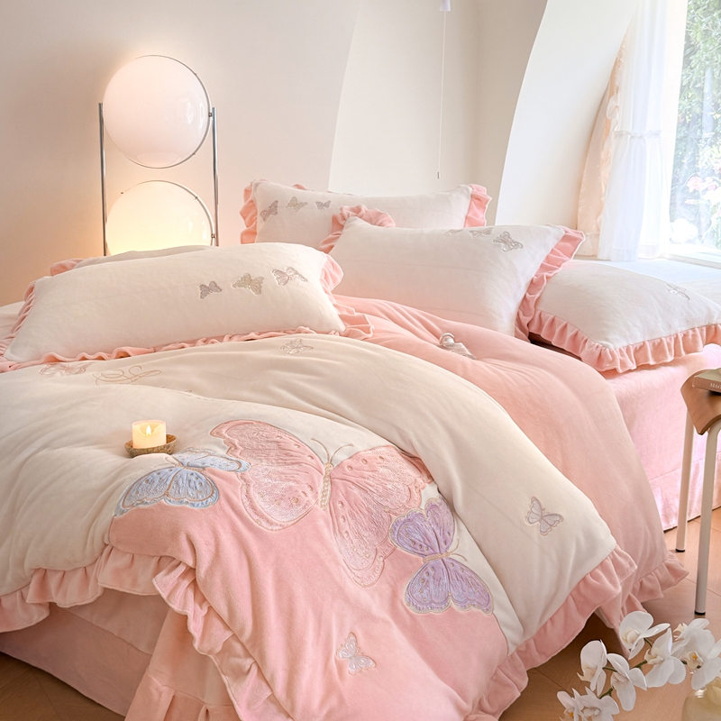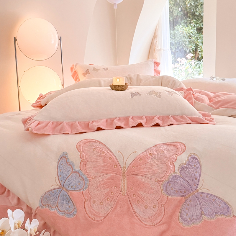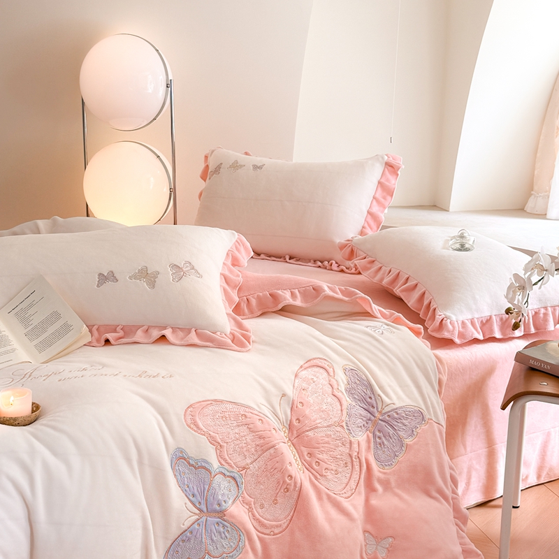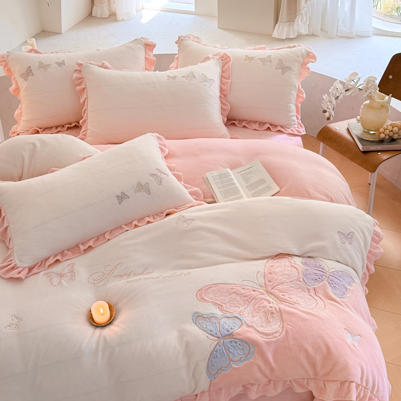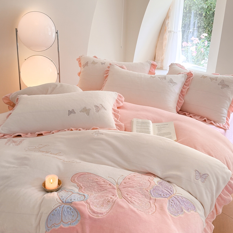 (总)可以家居 2025新款高克重全消光超细旦奶芙云绒四件套-玛利亚系列,粉豆沙,贵族粉,新芽绿