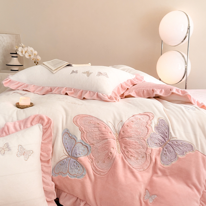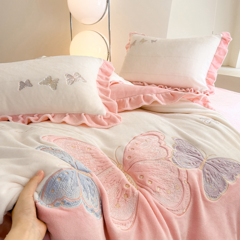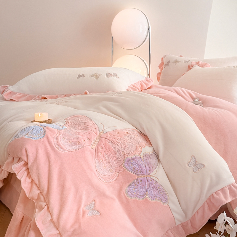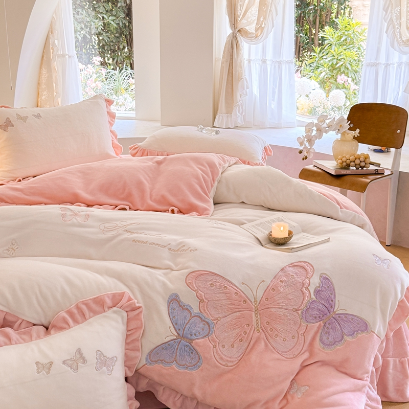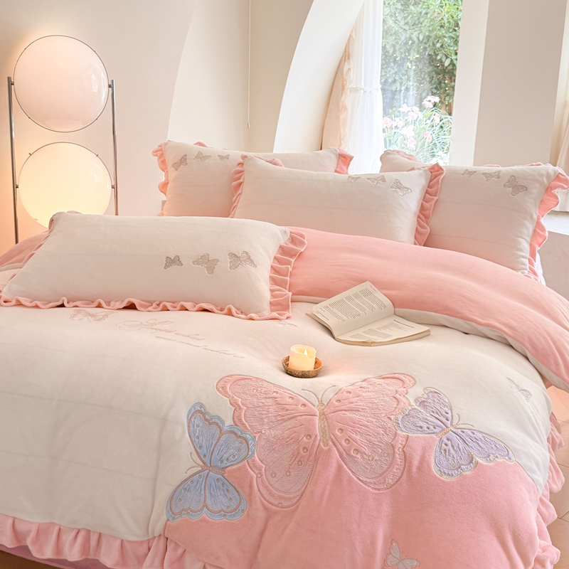 (总)可以家居 2025新款高克重全消光超细旦奶芙云绒四件套-玛利亚系列,粉豆沙,贵族粉,新芽绿
