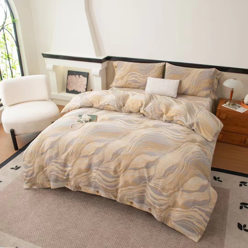 双层纱家居 2024新款双层纱四件套 水墨米黄