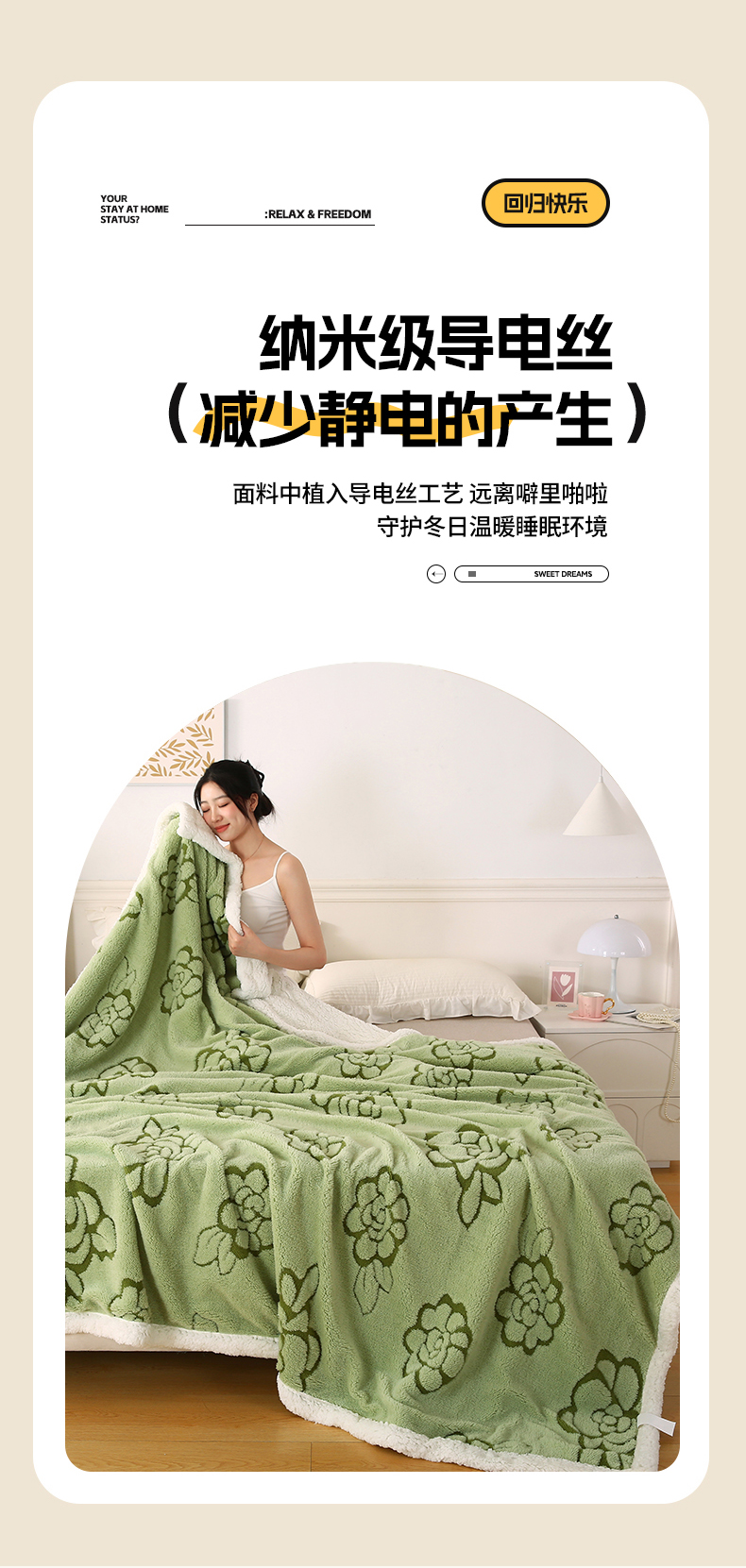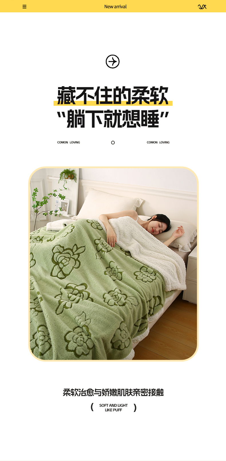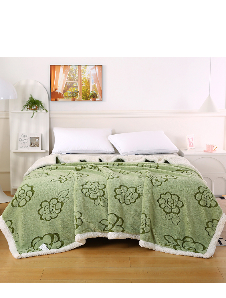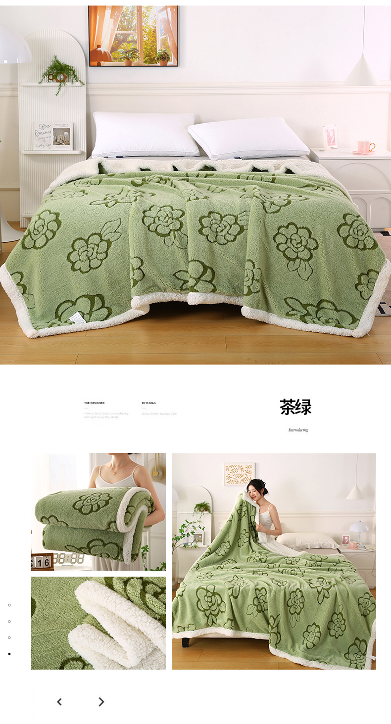 商品名称:巴木赫 2024新款提花朵朵绒双层羊羔绒毯 茶绿
