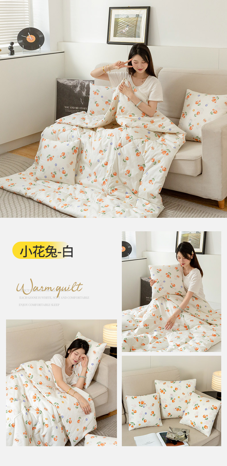 商品名称:雷人家纺 2024新款A类全棉喷气13372印花多功能抱枕被 小花兔-白
