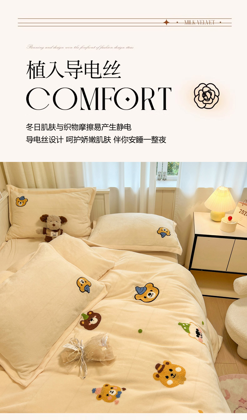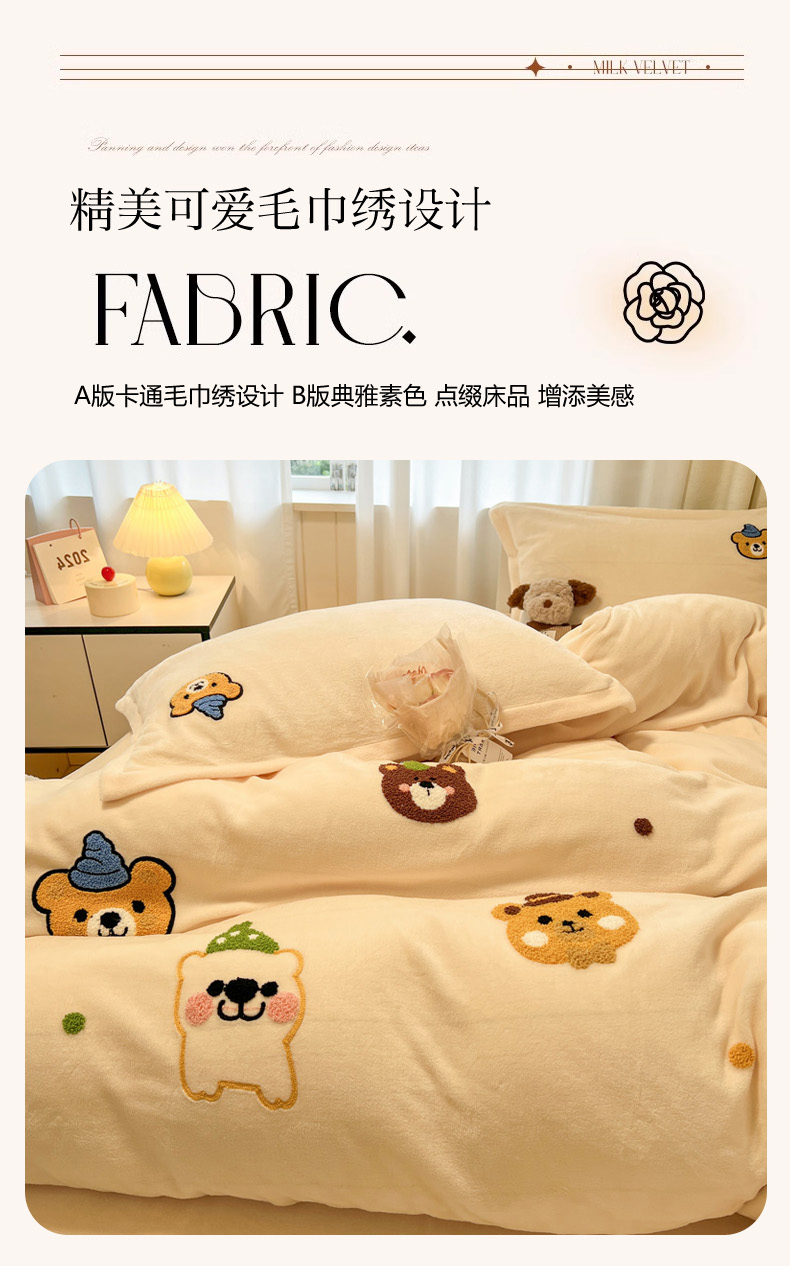 商品名称:梦澜蒂 2024新款加厚牛奶绒毛巾绣四件套