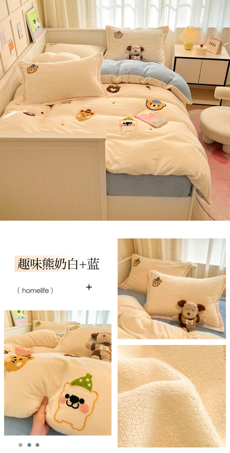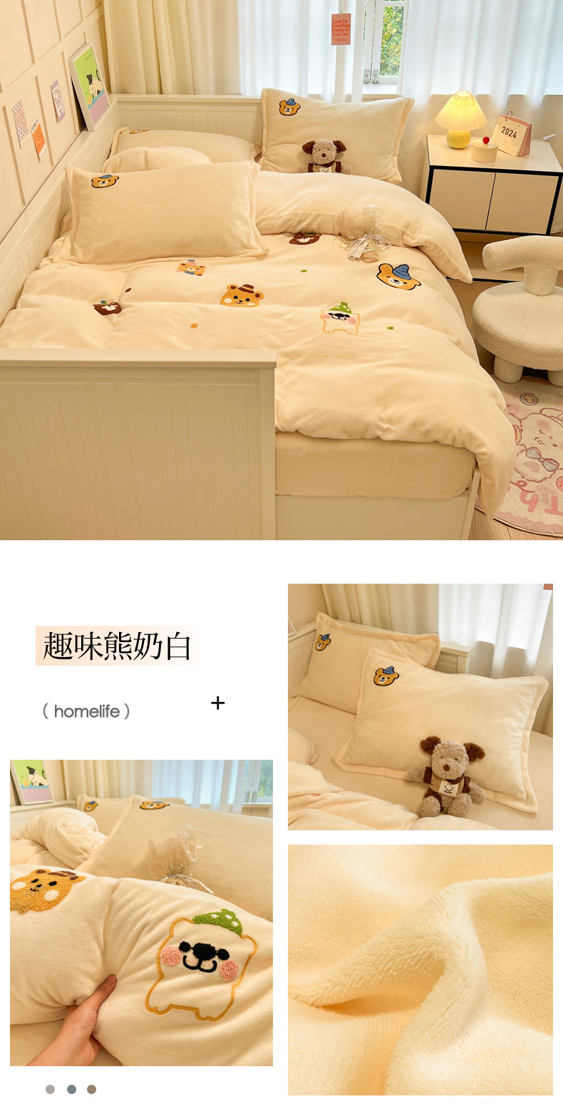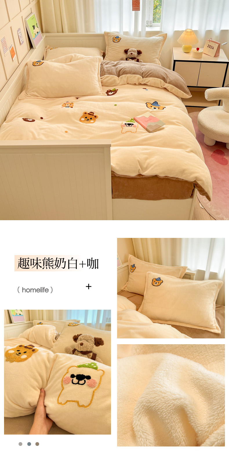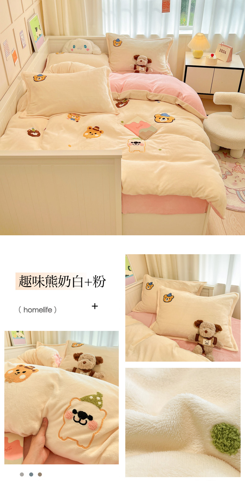春光里 2024新款牛奶绒印花混搭四件套,墨点涂鸦,奇趣星-粉,奇趣星-黑,奇趣星-紫,甜酷斑纹,小豹可可